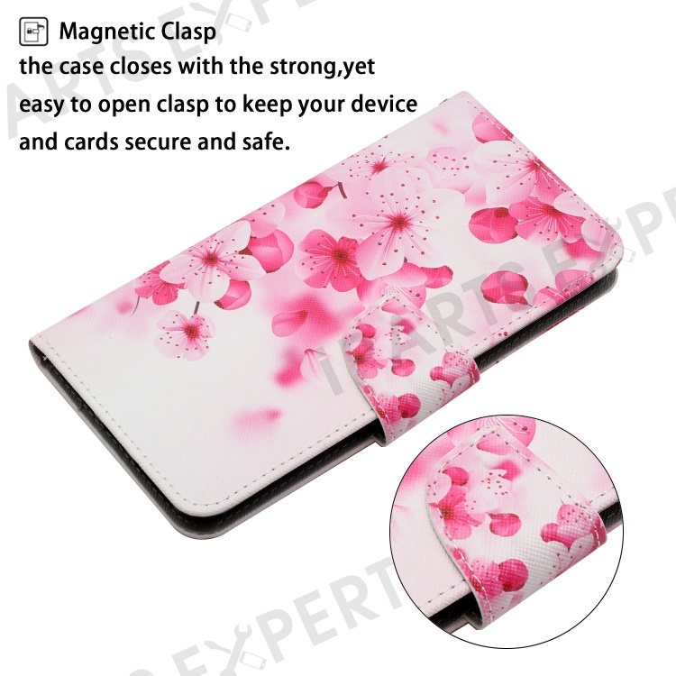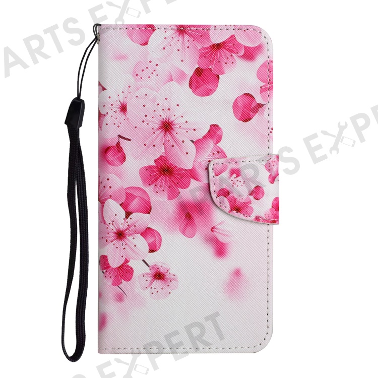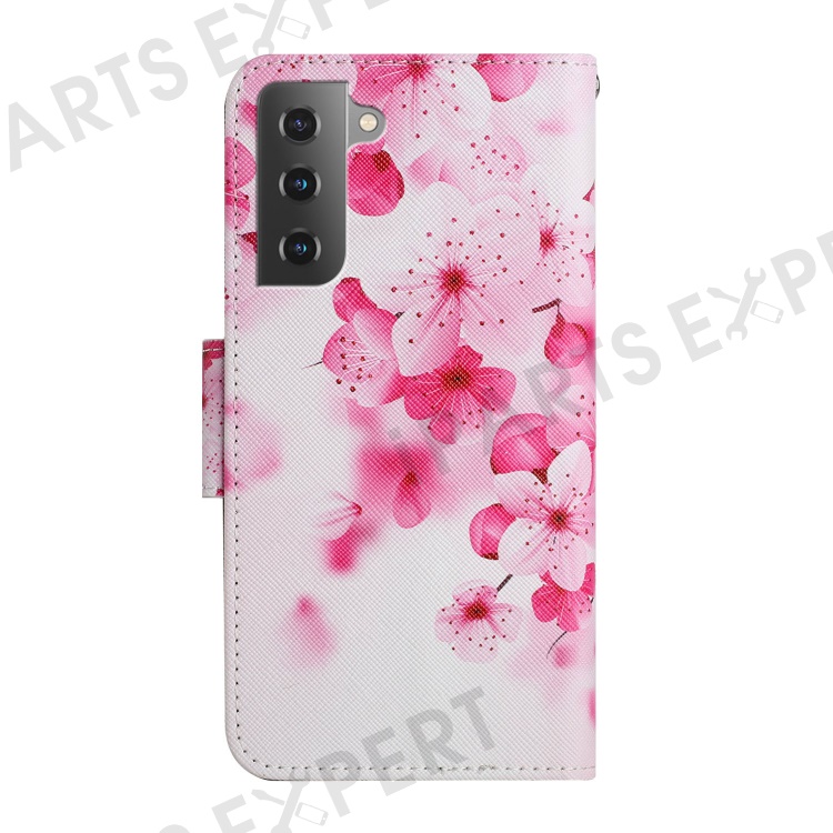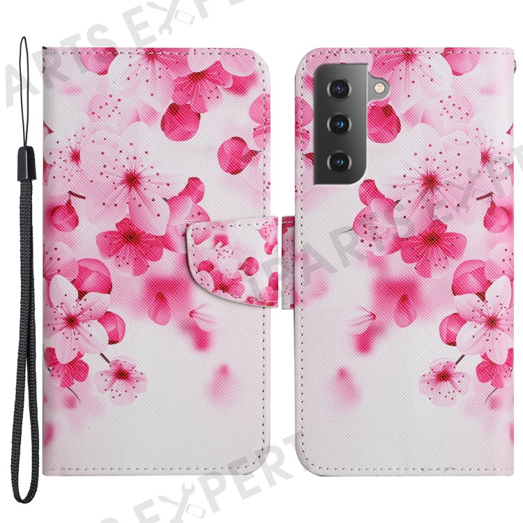 Pattern Printing All-round Protection Leather Phone Case Wallet Stand Cover Shell with Wrist Strap for Samsung Galaxy S22 5G - Red Flower
