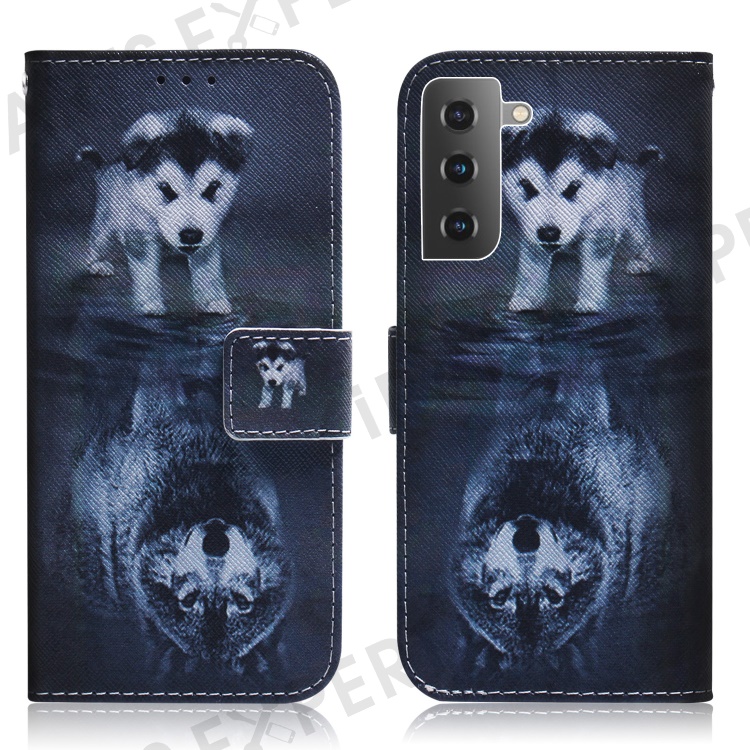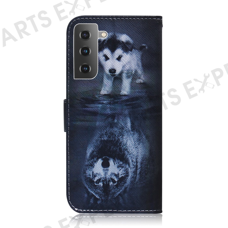 Pattern Printing Design Stand Flip Magnetic Clasp PU Wallet Phone Case for Samsung Galaxy S22 5G - Dog and Wolf