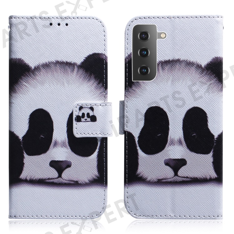 Pattern Printing Design Stand Flip Magnetic Clasp PU Wallet Phone Case for Samsung Galaxy S22 5G - Panda
