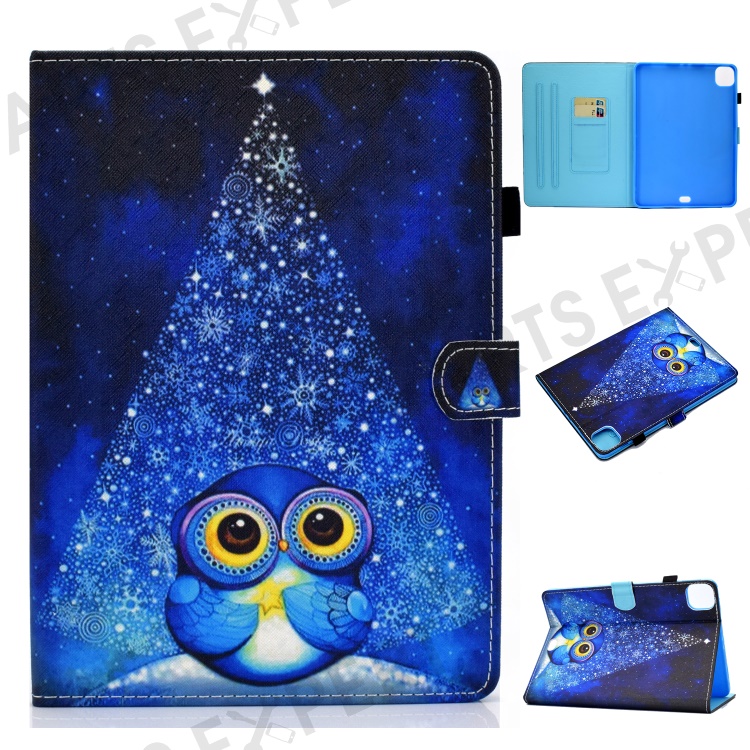 Pattern Printing Leather Card Holder Tablet Shell for iPad Air 11 (2026) / (2025) / (2024) / Air (2020) (2022) / Pro 11 (2021) - Blue Owl
