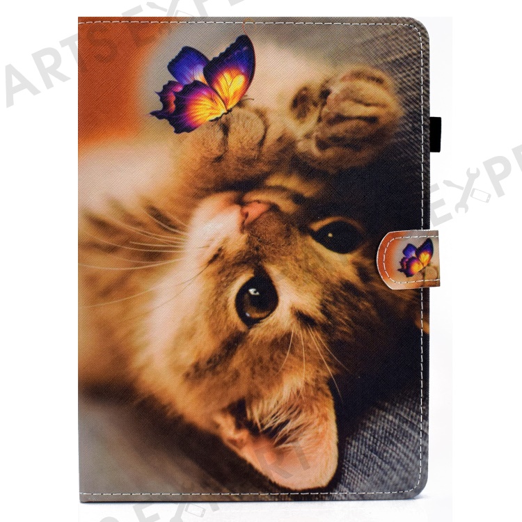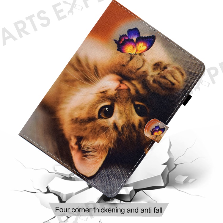 Pattern Printing Leather Card Holder Tablet Shell for iPad Air 11 (2026) / (2025) / (2024) / Air (2020) (2022) / Pro 11 (2021) - Cat and Butterfly