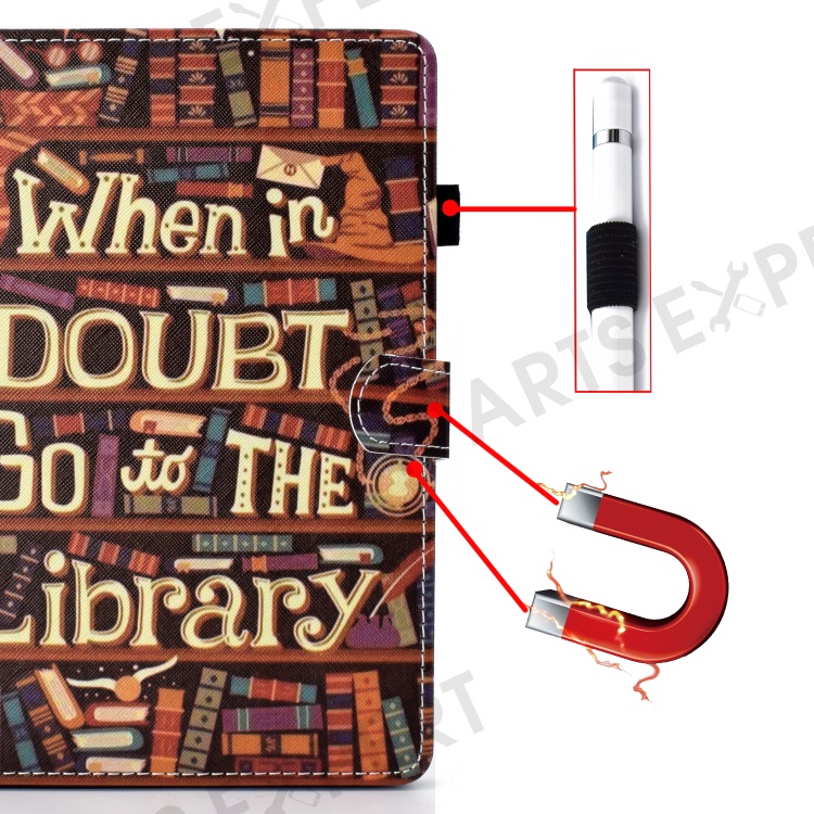 Pattern Printing Leather Card Holder Tablet Shell for iPad Air 11 (2026) / (2025) / (2024) / Air (2020) (2022) / Pro 11 (2021) - Library