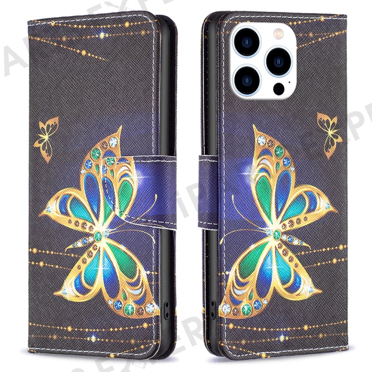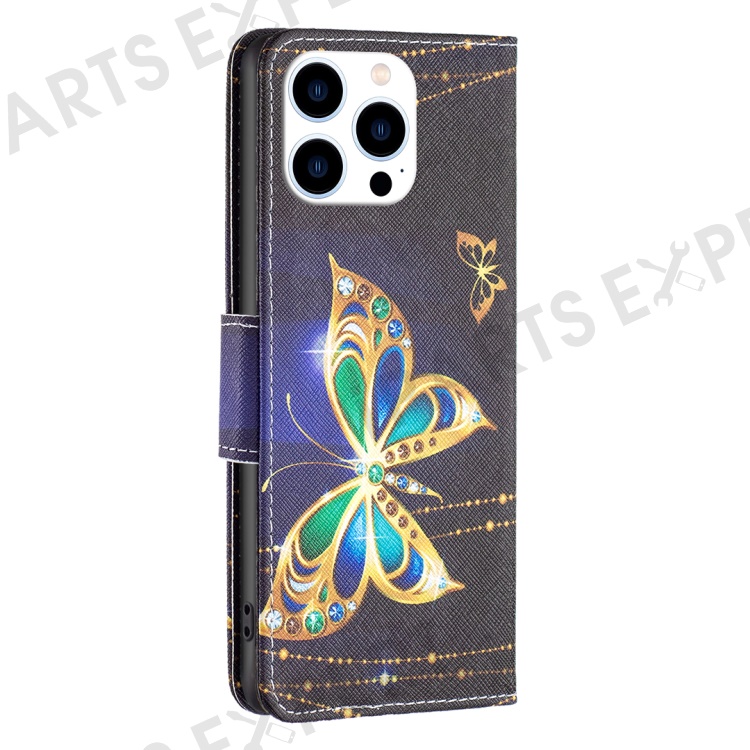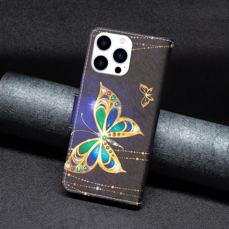Pattern Printing Leather Case for iPhone 15 Pro Max , Stand Wallet Anti-drop Phone Cover - Jewelry Butterfly