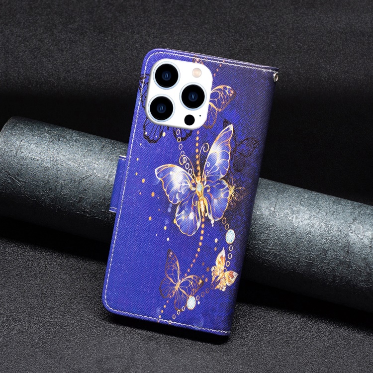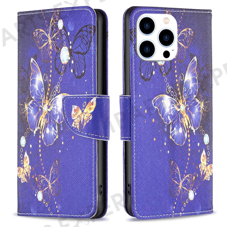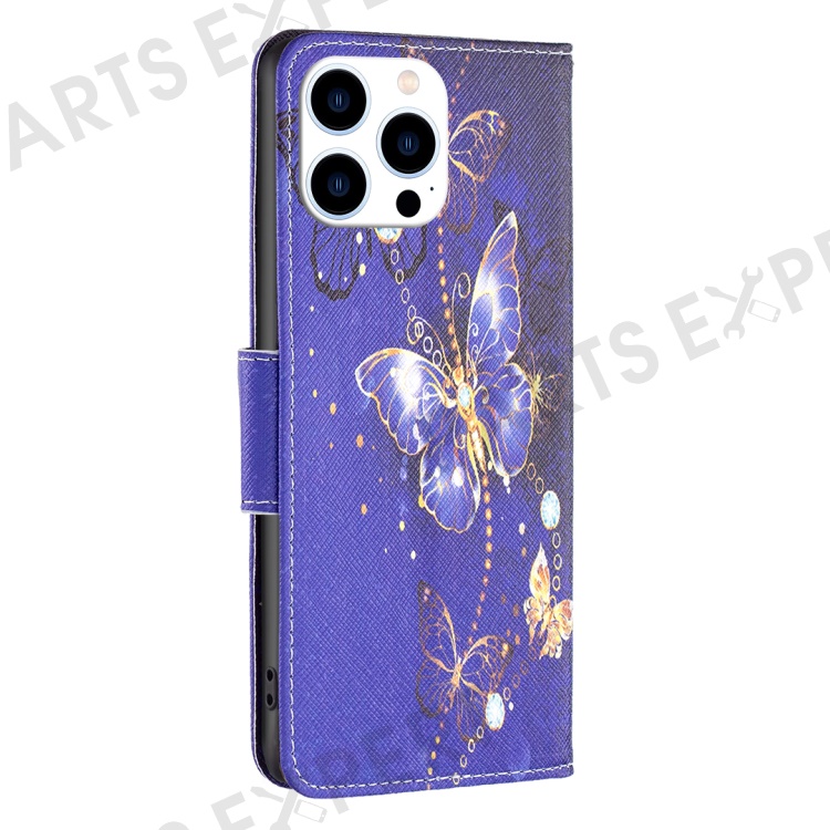 Pattern Printing Leather Case for iPhone 15 Pro Max , Stand Wallet Anti-drop Phone Cover - Purple Butterflies