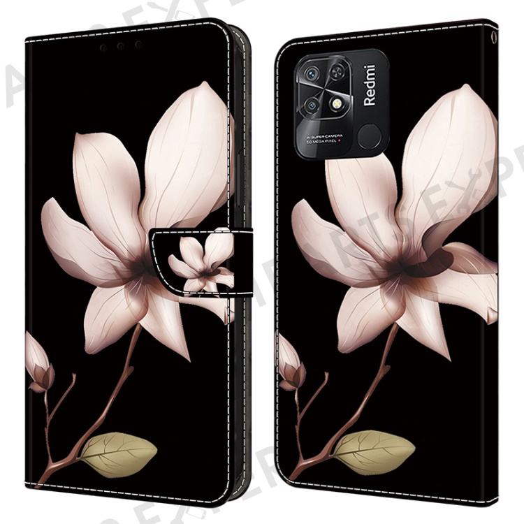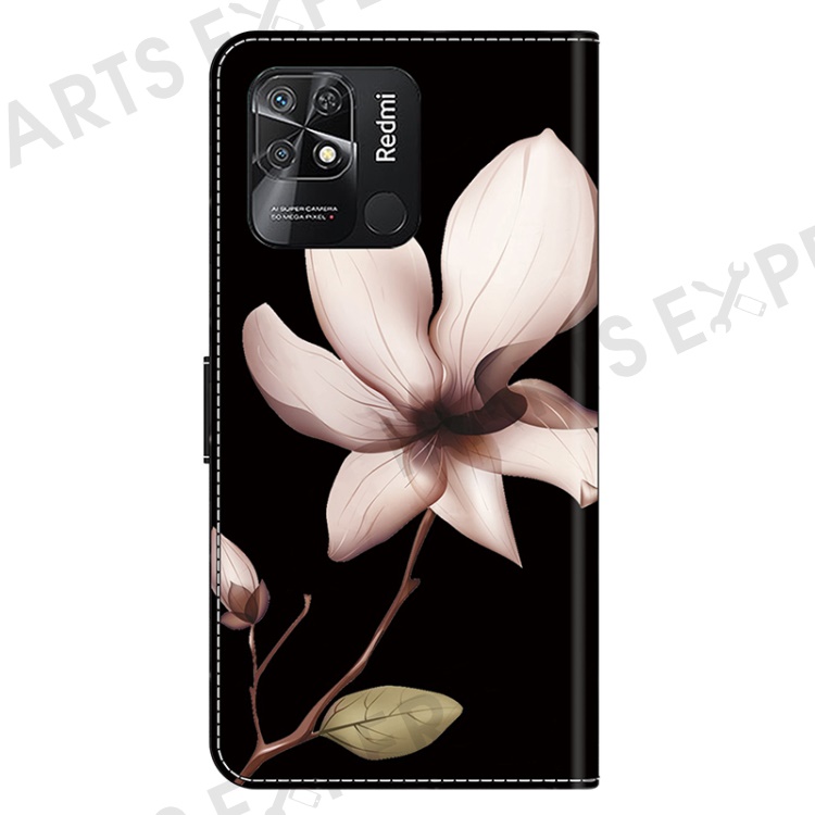 Pattern Printing Leather Case for Xiaomi Redmi 10C 4G Case Anti-Drop Wallet Phone Case - Pink Flower