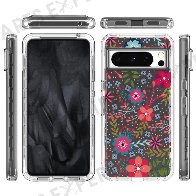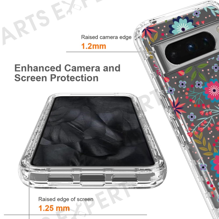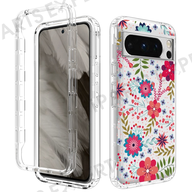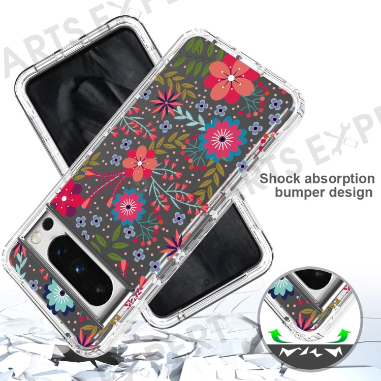 Pattern Printing Phone Case for Google Pixel 8 Pro , PC Frame + TPU Anti-drop Clear Phone Cover - Flower and Leaf