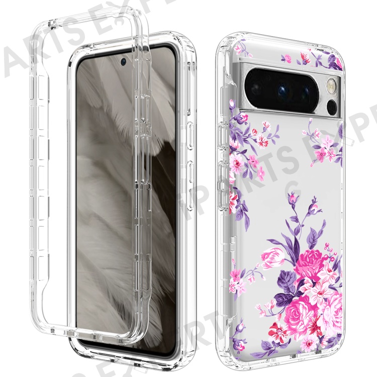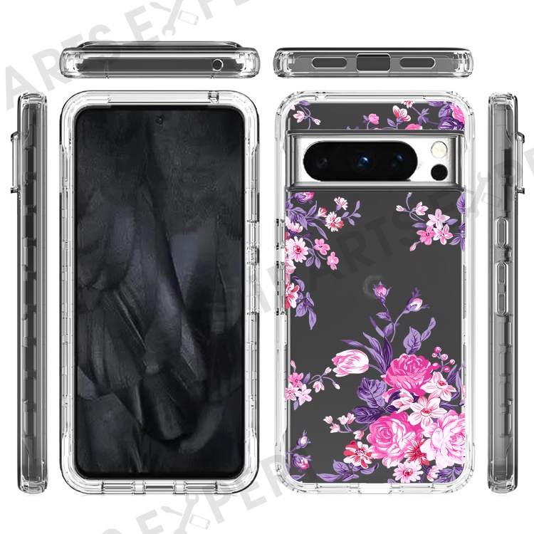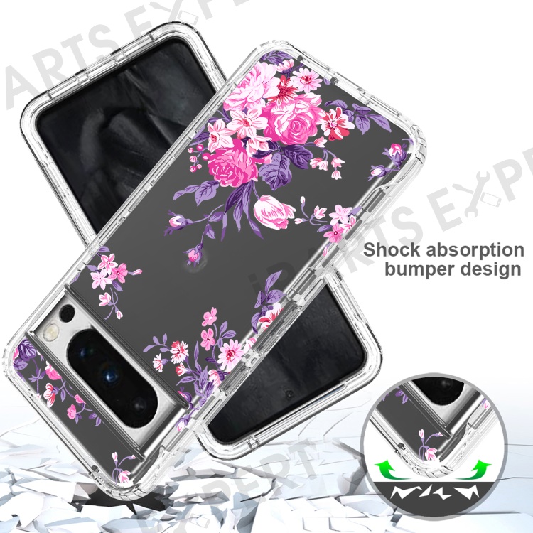 Pattern Printing Phone Case for Google Pixel 8 Pro , PC Frame + TPU Anti-drop Clear Phone Cover - Flower