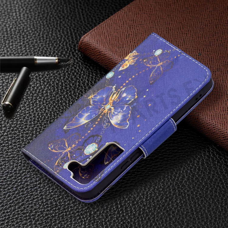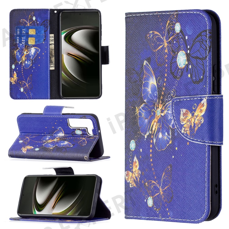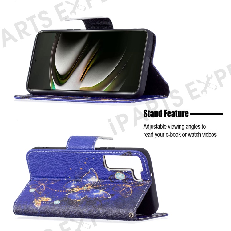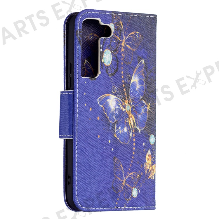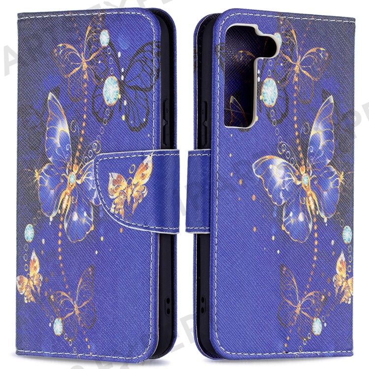 Pattern Printing PU Leather Flip Case Stand Magnetic Closure Protective Wallet Phone Cover for Samsung Galaxy S22 5G - Purple Butterflies