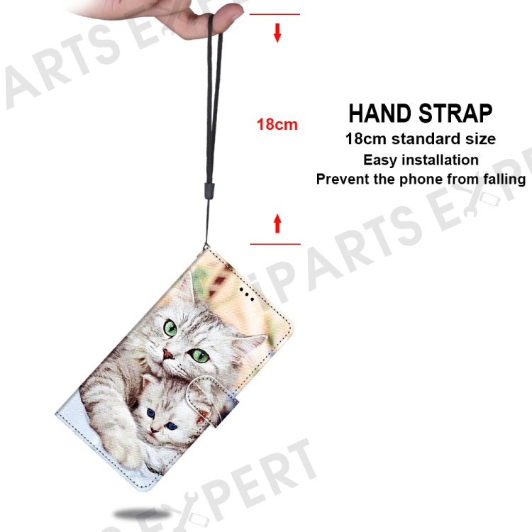 Pattern Printing PU Leather Flip Cover Shockproof TPU Stand Wallet Phone Case with Strap for Samsung Galaxy A03 Core - Cat Holds Kitten