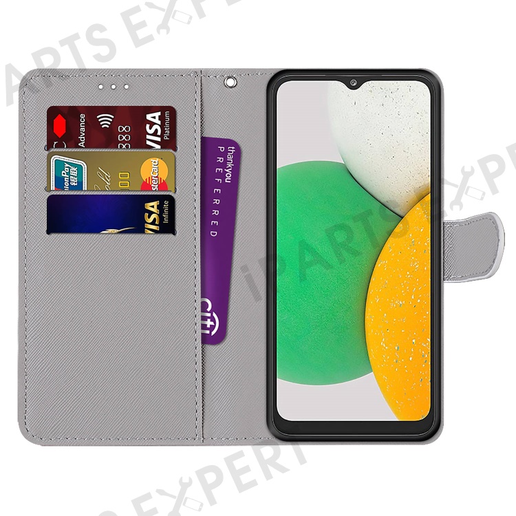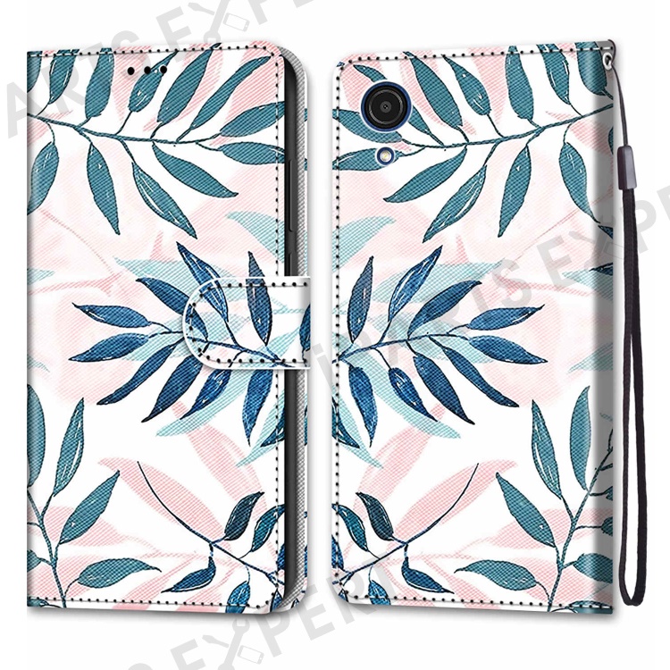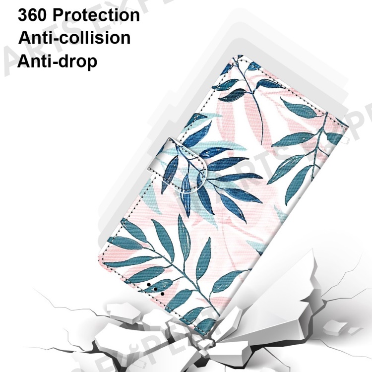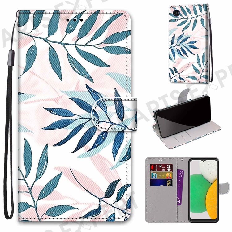 Pattern Printing PU Leather Flip Cover Shockproof TPU Stand Wallet Phone Case with Strap for Samsung Galaxy A03 Core - Pink/Green Leaves