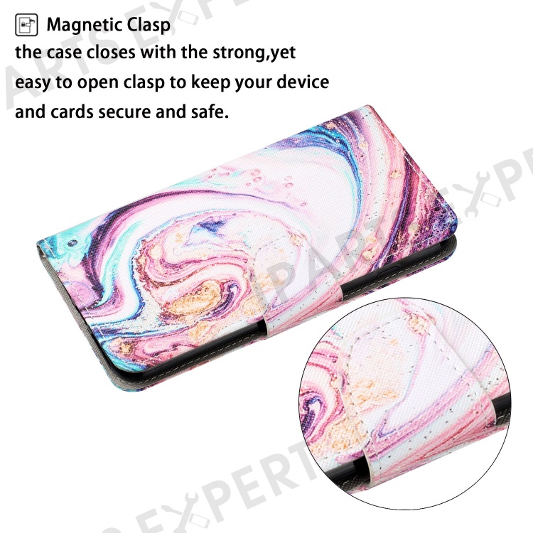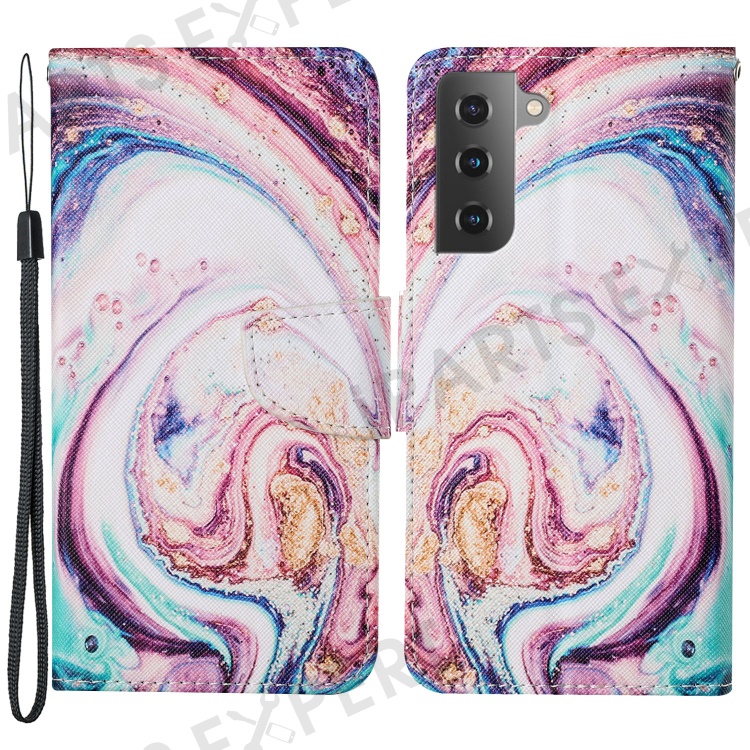 Pattern Printing Scratch-resistant Shockproof PU Leather Stand Case Wallet Cover for Samsung Galaxy S22+ 5G - Swirl/Marble Pattern