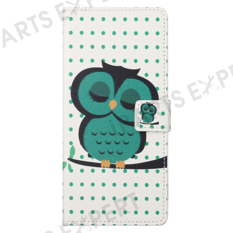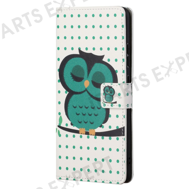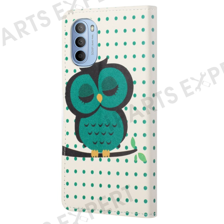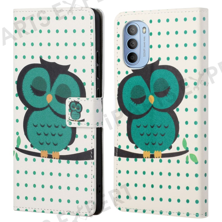 Pattern Printing TPU + PU Leather Phone Case Magnetic Closure Flip Phone Protector with Wallet Stand for Motorola Moto G31/G41 - Green Owl