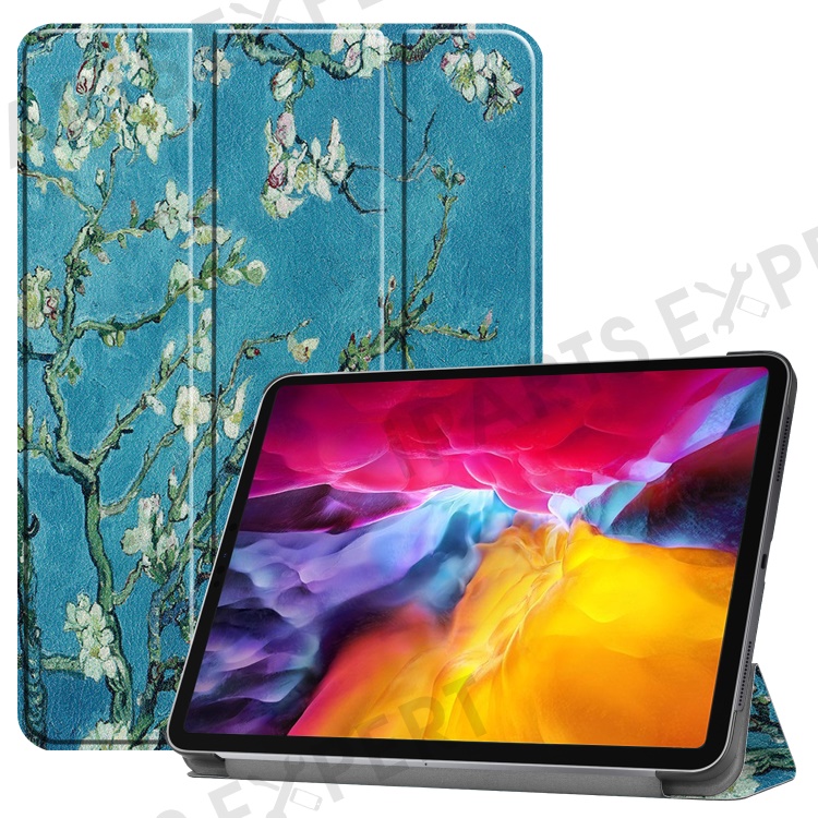 Pattern Printing Tri-fold Stand Case for iPad Pro 11-inch (2021), Folio PU Leather Auto Wake/Sleep Cover with Pen Slot - Flower