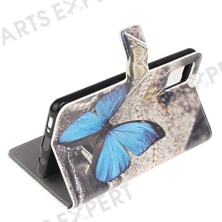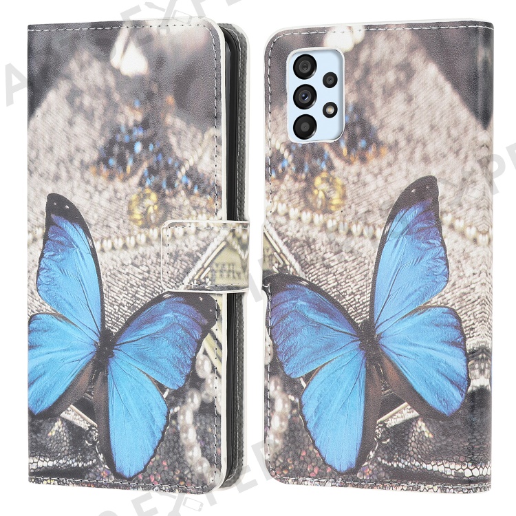 Pattern Printing Wallet Leather Phone Shell for Samsung Galaxy A52 4G/5G / A52s 5G Cell Phone Accessory - Blue Butterfly