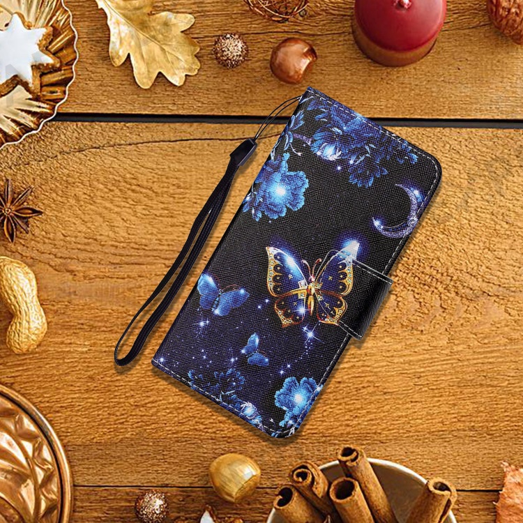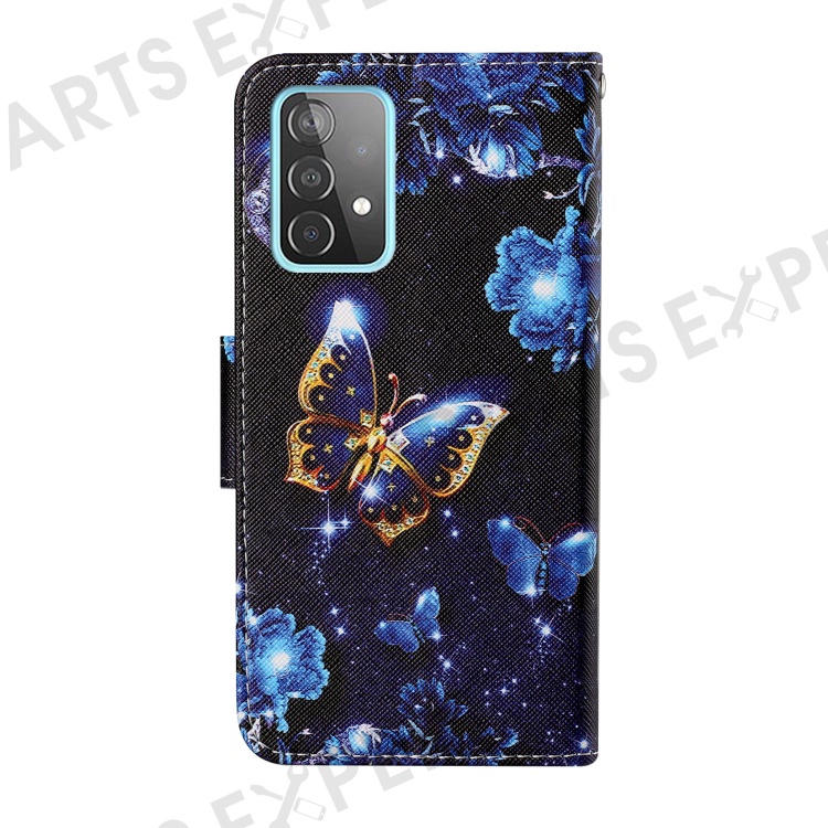 Pattern Printing Wallet Stand PU Leather Phone Cover Shell with Lanyard for Samsung Galaxy A52 4G/5G / A52s 5G - Butterfly
