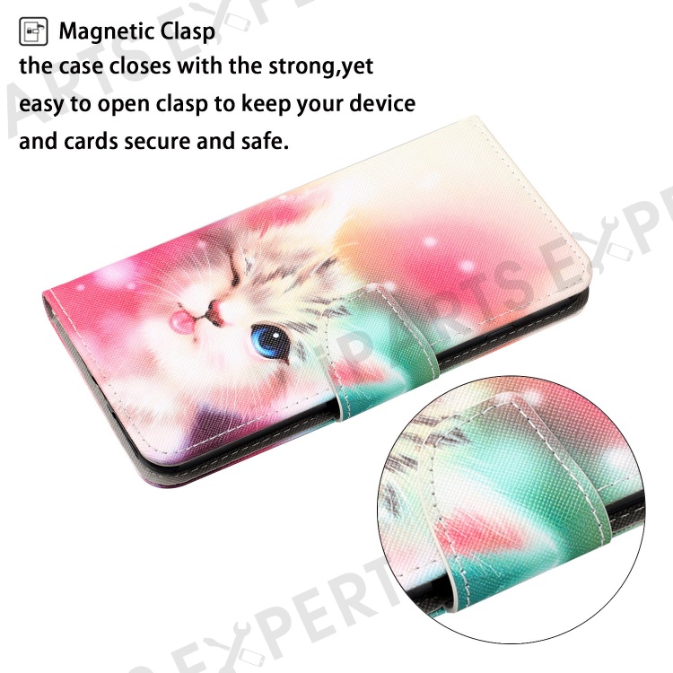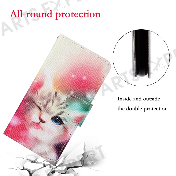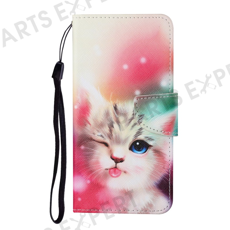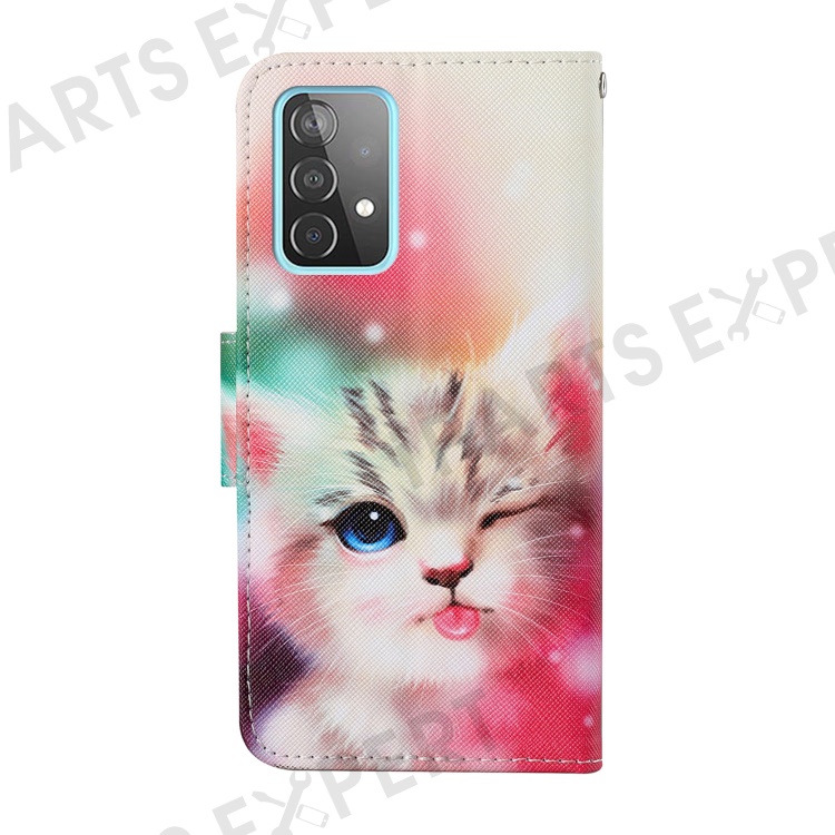 Pattern Printing Wallet Stand PU Leather Phone Cover Shell with Lanyard for Samsung Galaxy A52 4G/5G / A52s 5G - Cute Cat