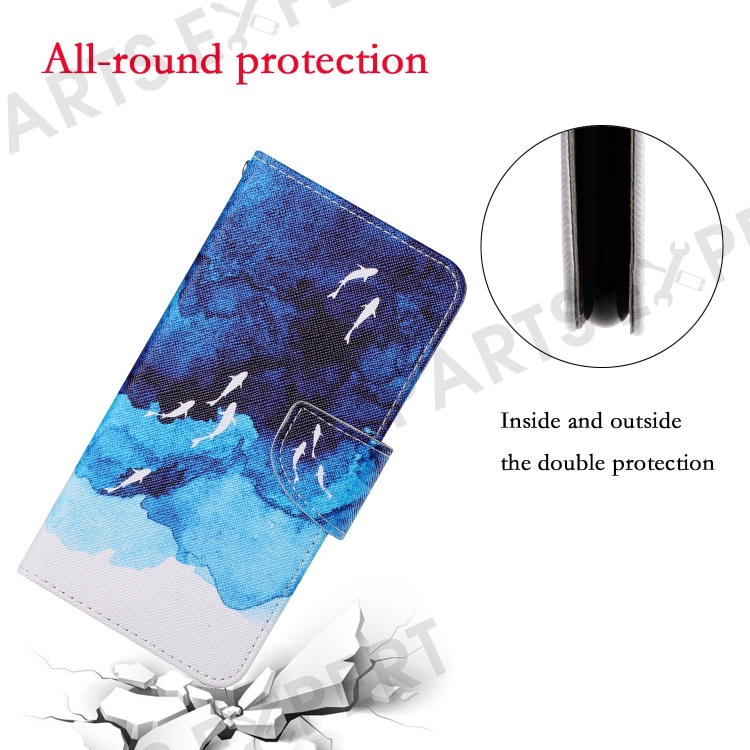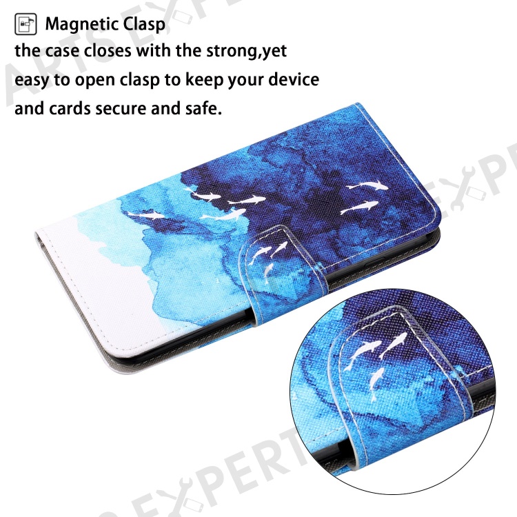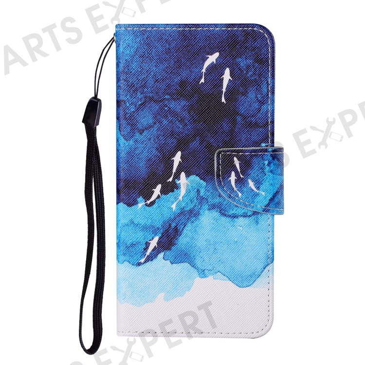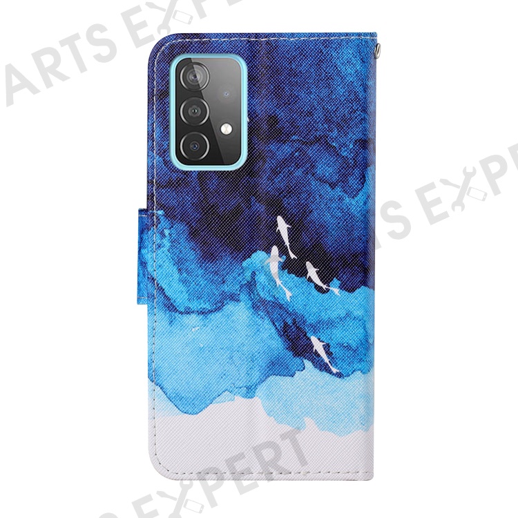 Pattern Printing Wallet Stand PU Leather Phone Cover Shell with Lanyard for Samsung Galaxy A52 4G/5G / A52s 5G - Fish