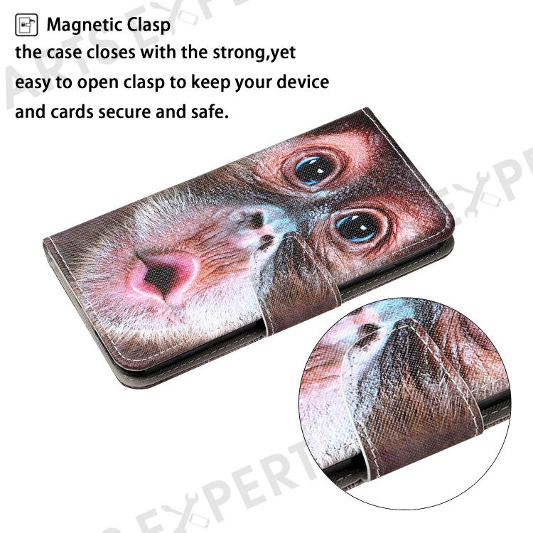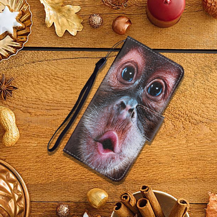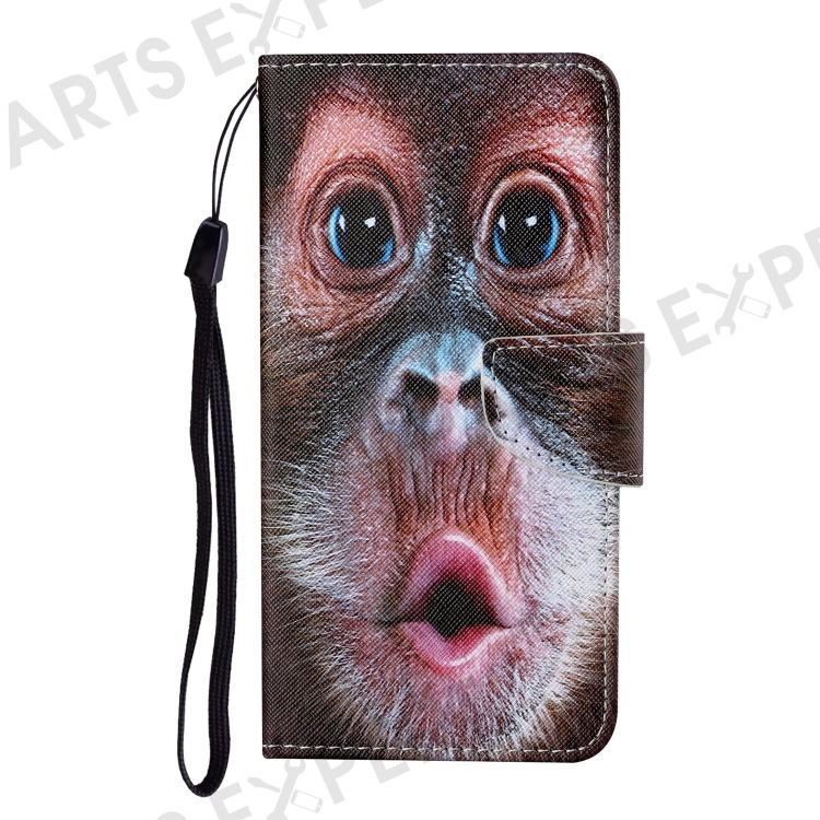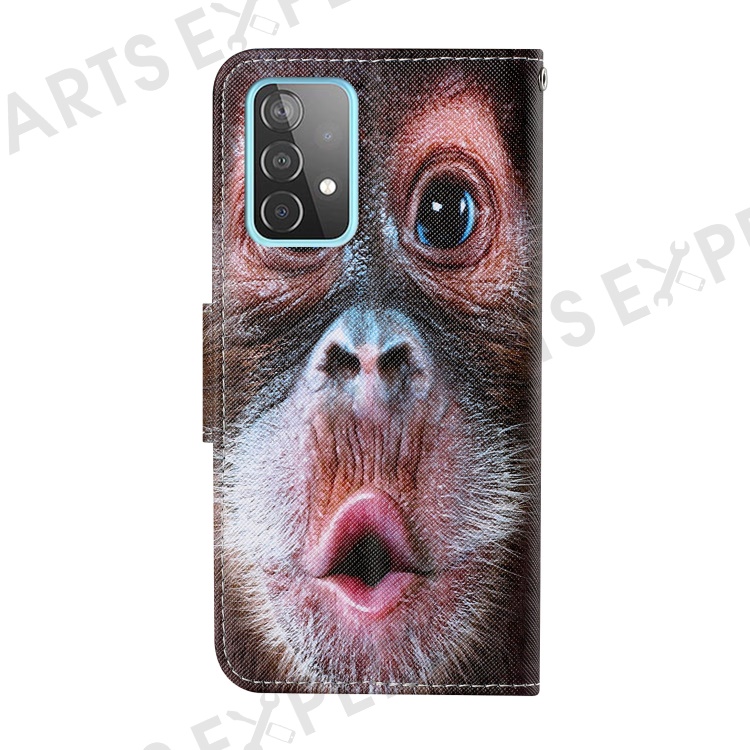 Pattern Printing Wallet Stand PU Leather Phone Cover Shell with Lanyard for Samsung Galaxy A52 4G/5G / A52s 5G - Orangutan