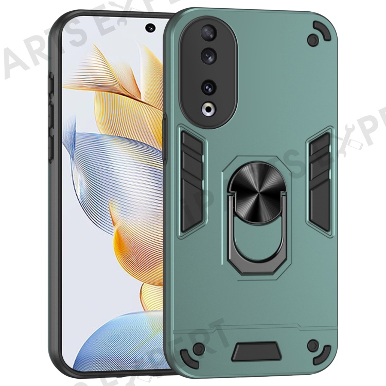 PC+TPU Case for Honor 90 Shell Rotating Ring Kickstand Drop-resistant Back Cover - Green