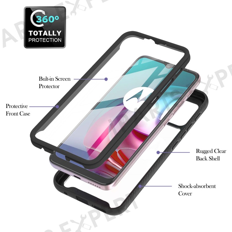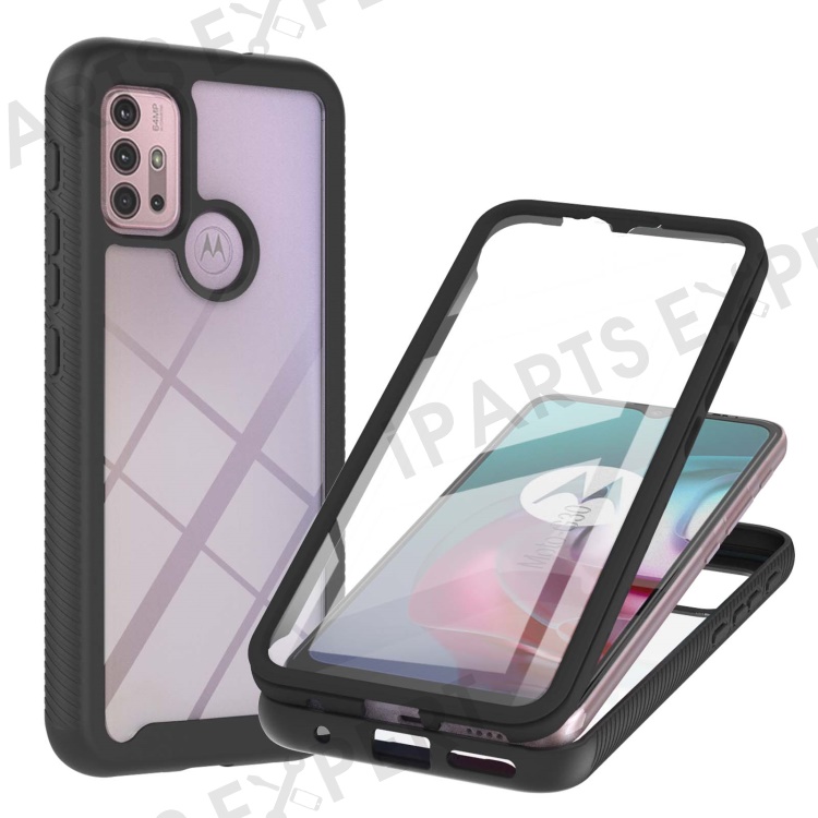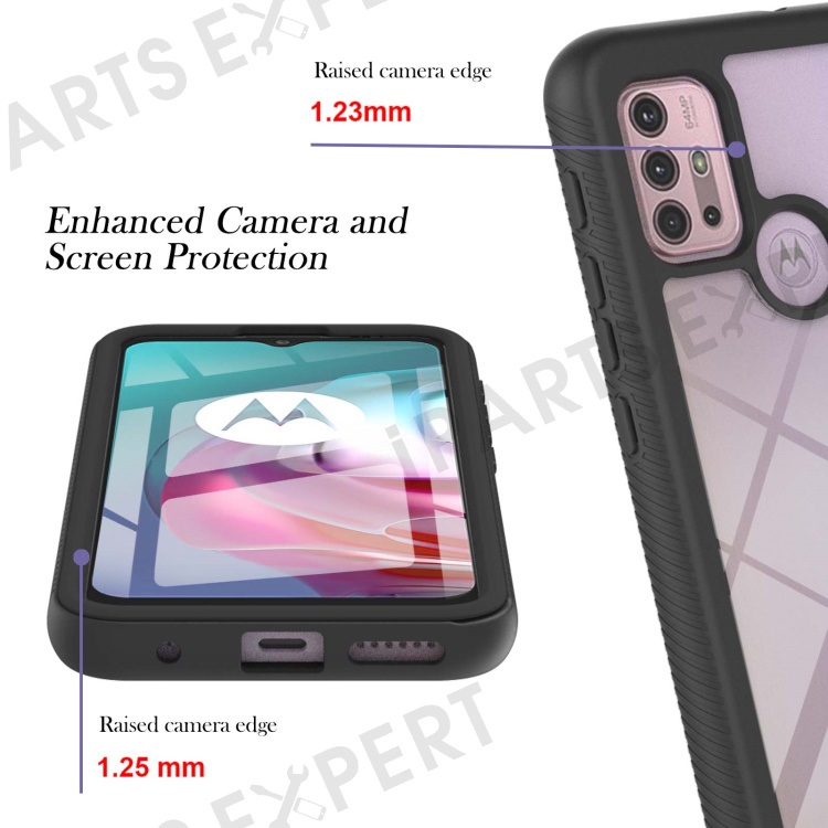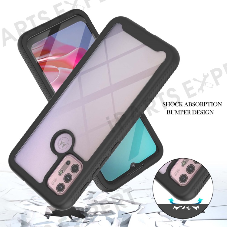 PC + TPU Hybrid Cover Drop Buffer Phone Case with PET Screen Protector for Motorola Moto G30/G10/G10 Power - Black