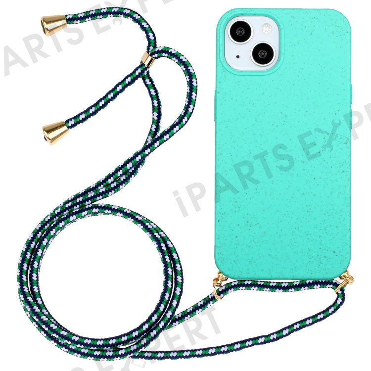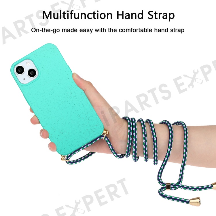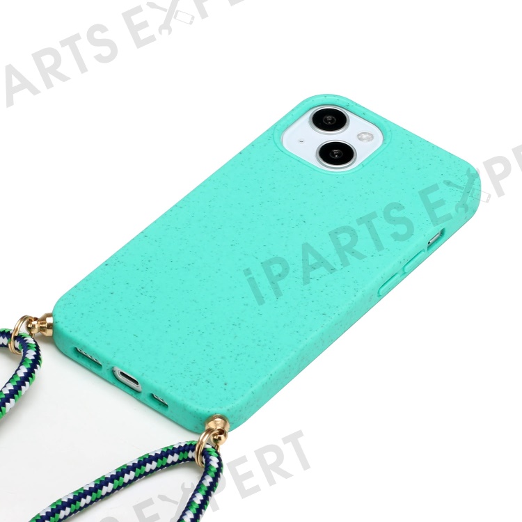 Phone Case for iPhone 14 Plus 6.7 inch, Wheat Straw + TPU Protective Smartphone Cover with Adjustable Lanyard - Sky Blue