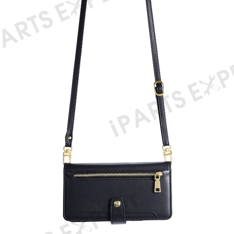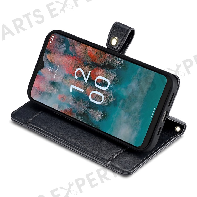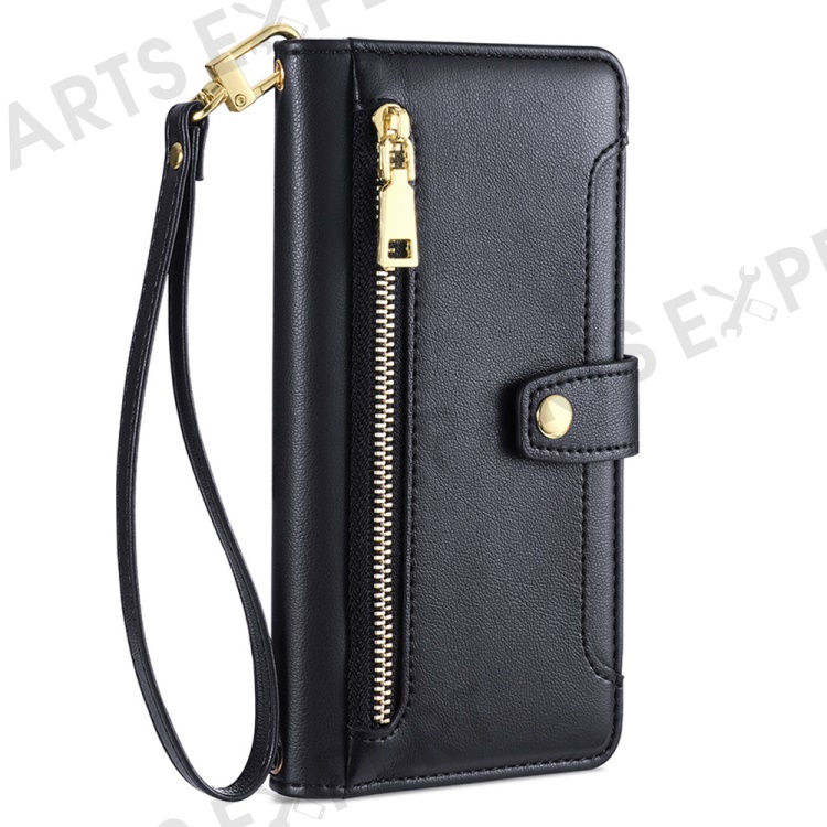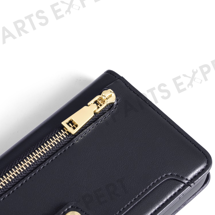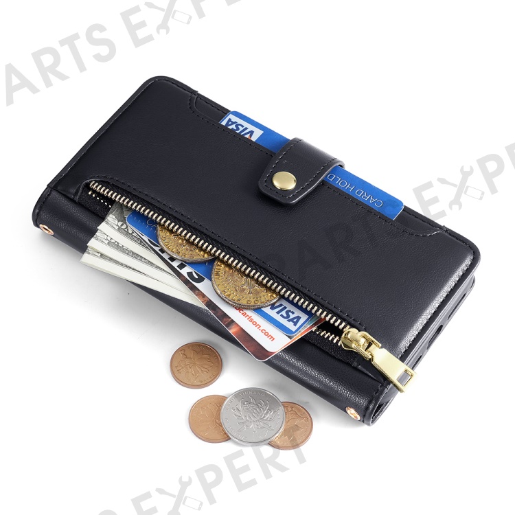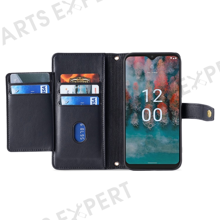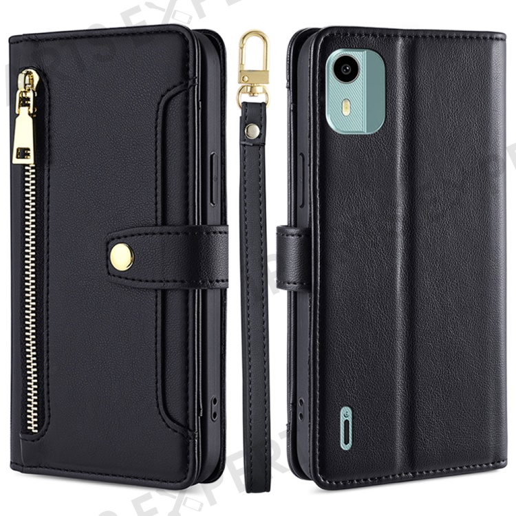 Phone Case for Nokia C12 4G / C12 Pro / C12 Plus Stand Wallet Leather Drop-proof Cover with Zipper Pocket and 2 Straps - Black