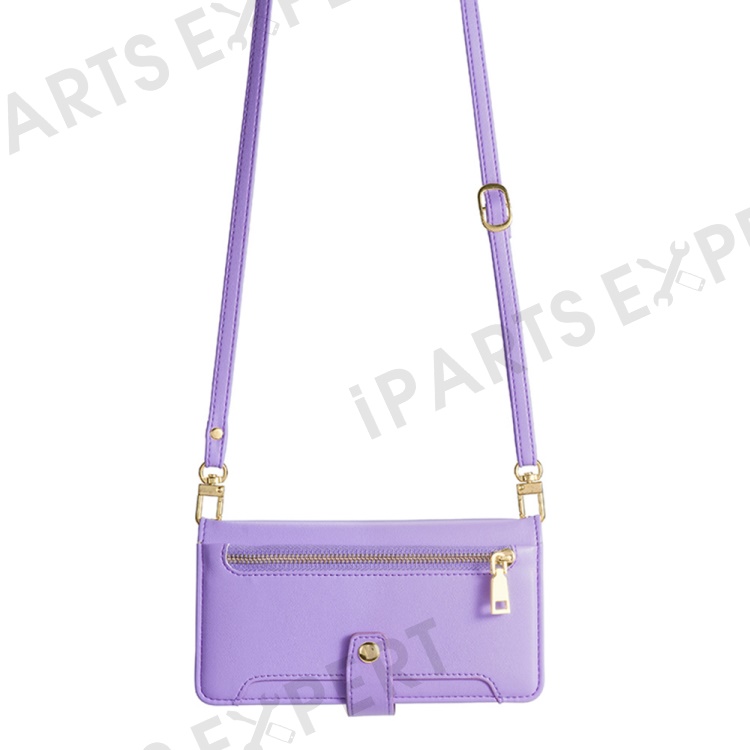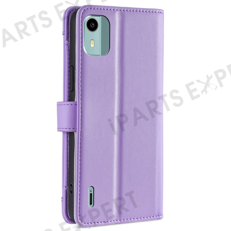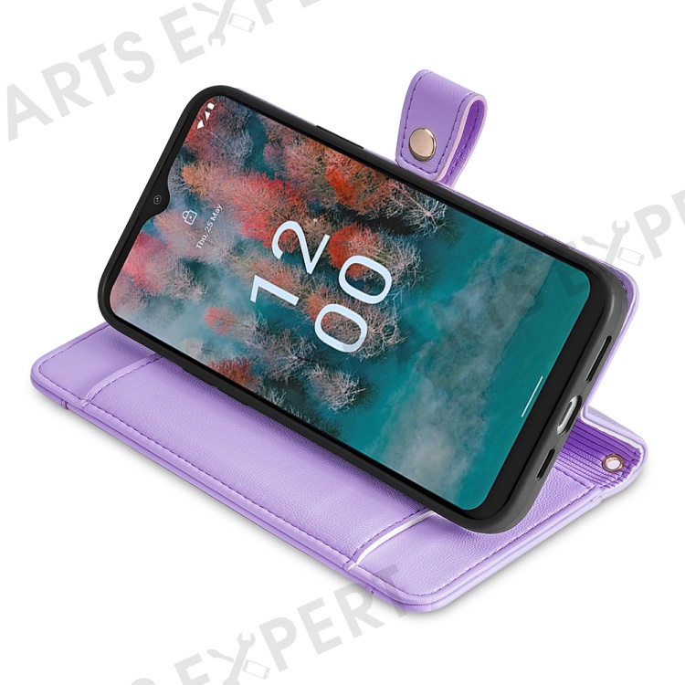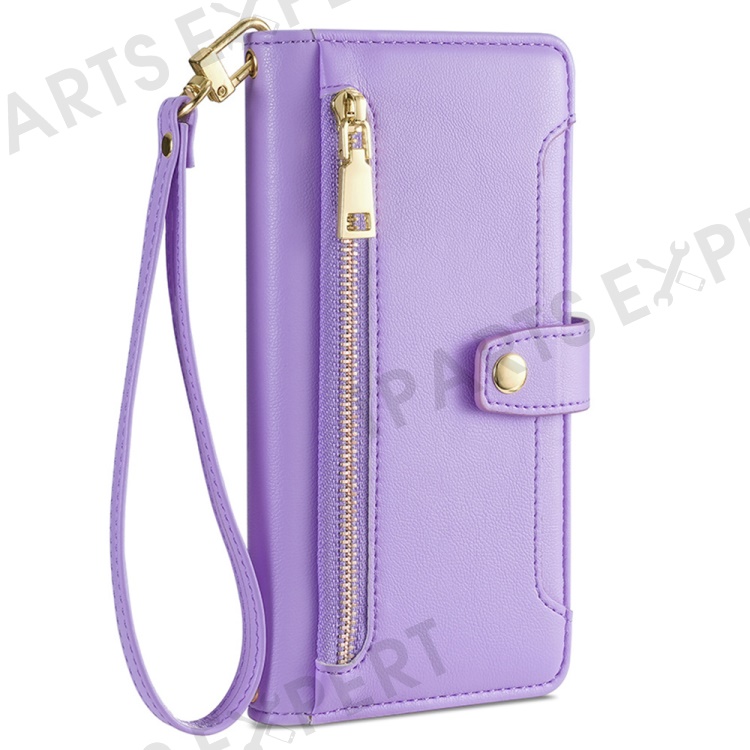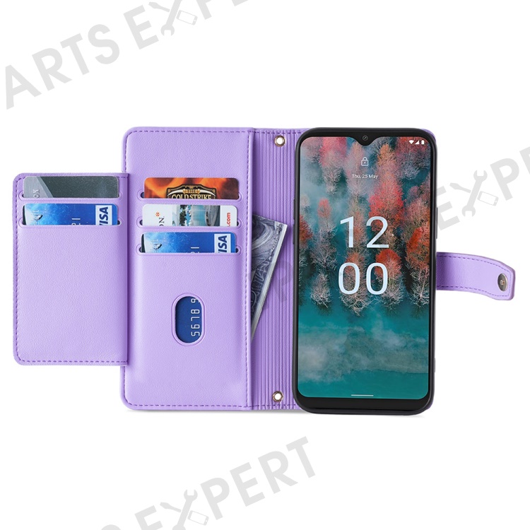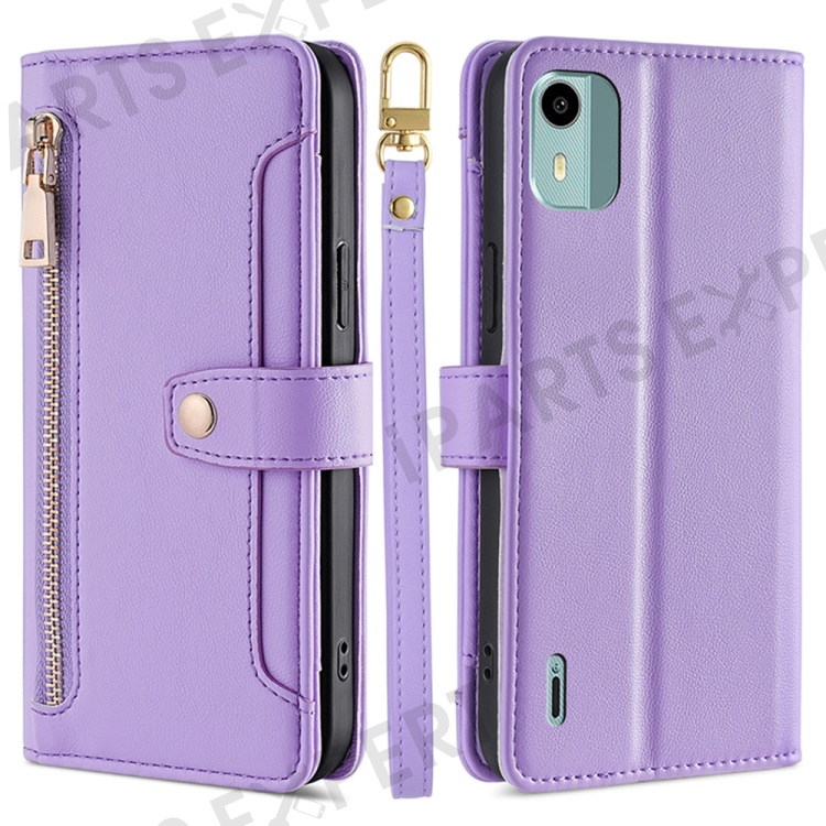 Phone Case for Nokia C12 4G / C12 Pro / C12 Plus Stand Wallet Leather Drop-proof Cover with Zipper Pocket and 2 Straps - Purple