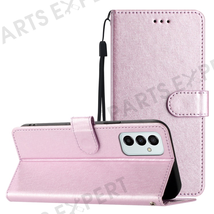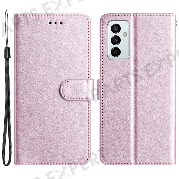 Phone Case for Samsung Galaxy A14 4G / 5G , Stand Silk Texture PU Leather Wallet Shell with Hand Strap - Light Purple