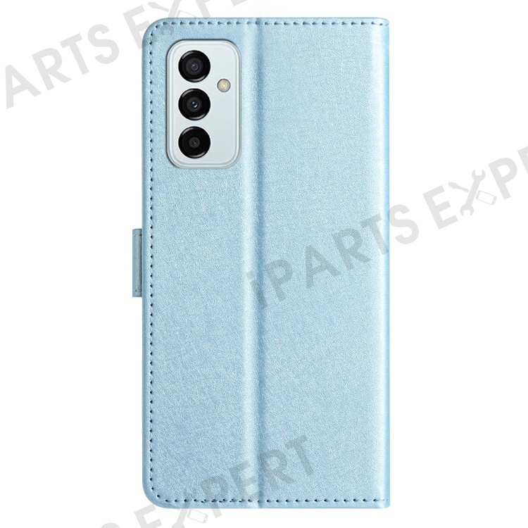 Phone Case for Samsung Galaxy A14 4G / 5G , Stand Silk Texture PU Leather Wallet Shell with Hand Strap - Sky Blue