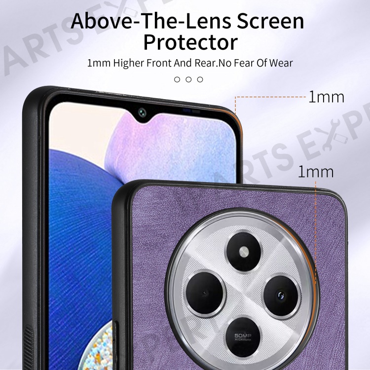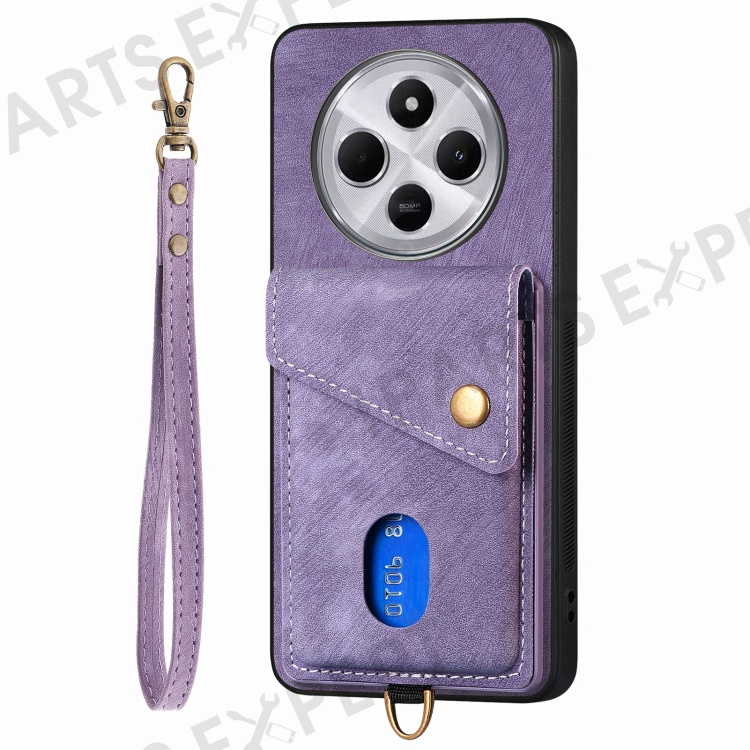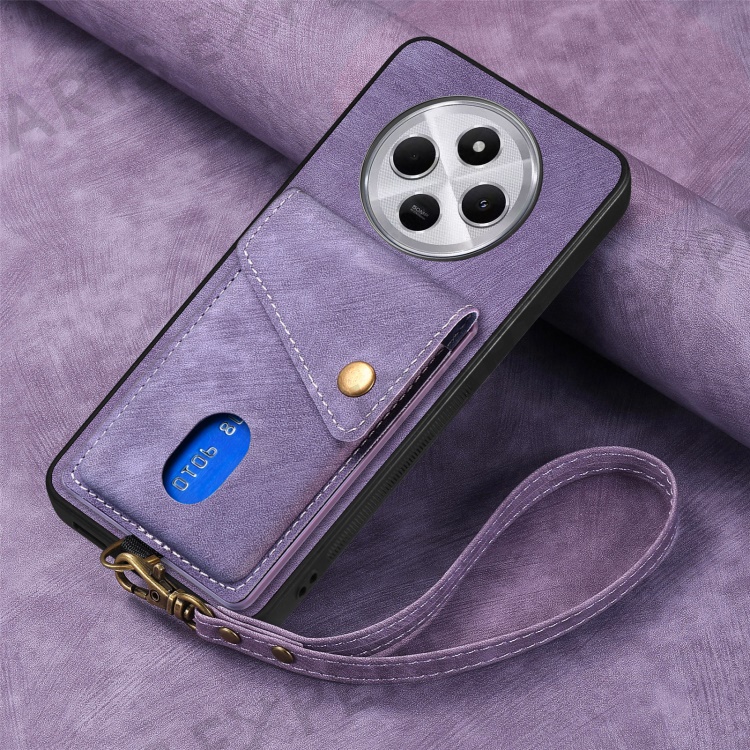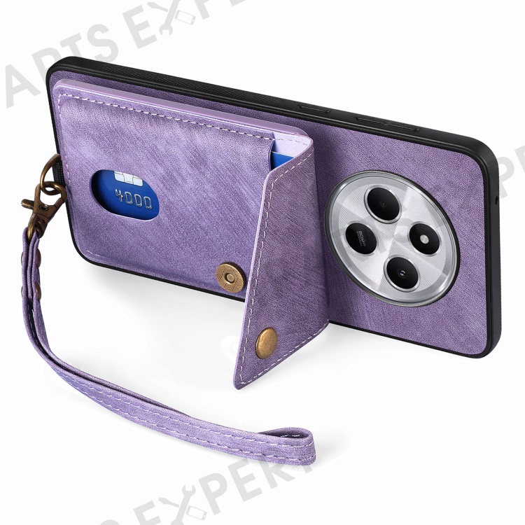 Phone Case For Xiaomi Redmi 14C 4G / 14R 5G / Poco C75 4G Leather+TPU Back Cover with Card Slot Kickstand - Purple