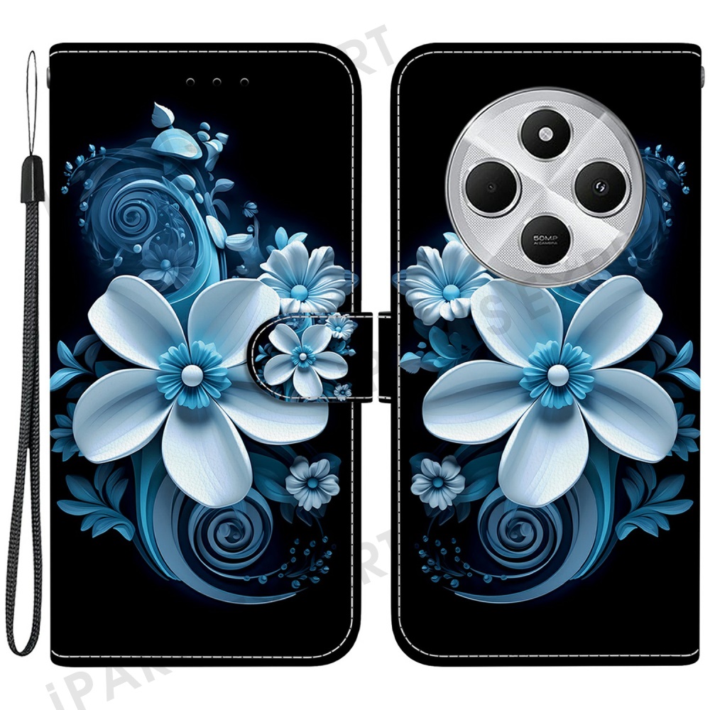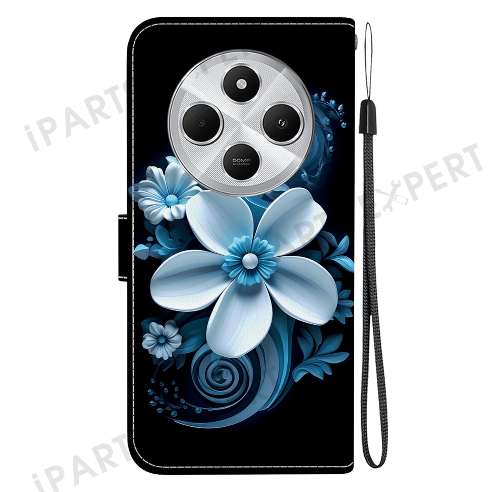 Phone Case For Xiaomi Redmi 14C 4G / Redmi 14R 5G / Poco C75 4G Pattern Printing Leather Flip Wallet Cover with Lanyard - Black Orchid