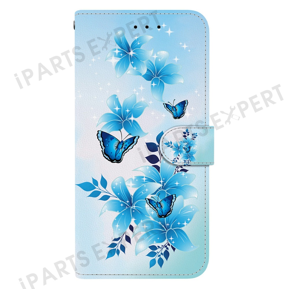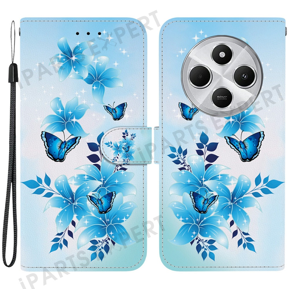 Phone Case For Xiaomi Redmi 14C 4G / Redmi 14R 5G / Poco C75 4G Pattern Printing Leather Flip Wallet Cover with Lanyard - Blue Butterfly