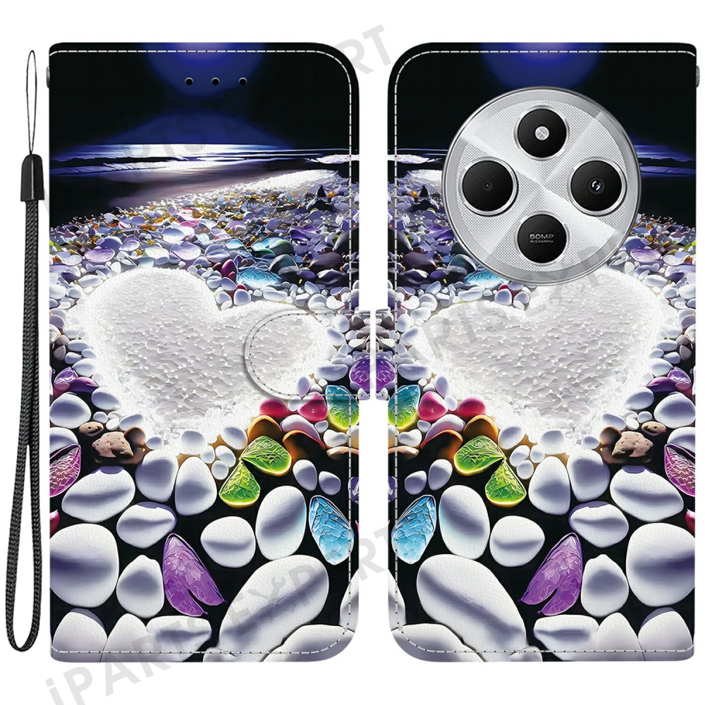 Phone Case For Xiaomi Redmi 14C 4G / Redmi 14R 5G / Poco C75 4G Pattern Printing Leather Flip Wallet Cover with Lanyard - Heart Shape