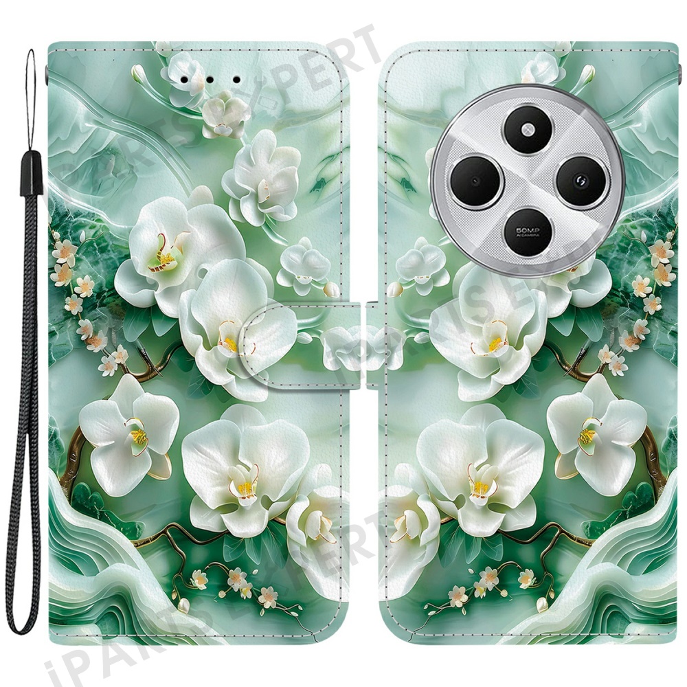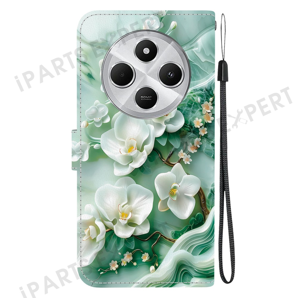 Phone Case For Xiaomi Redmi 14C 4G / Redmi 14R 5G / Poco C75 4G Pattern Printing Leather Flip Wallet Cover with Lanyard - Jade Flower
