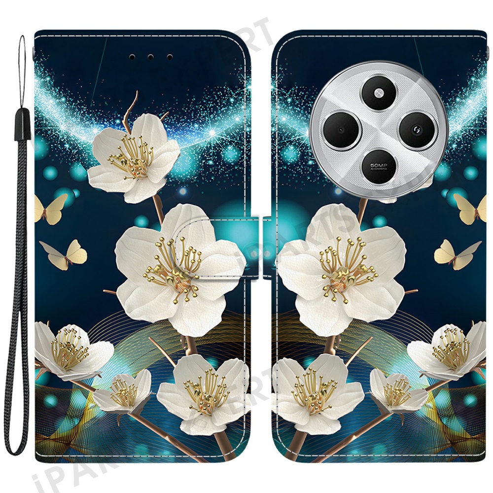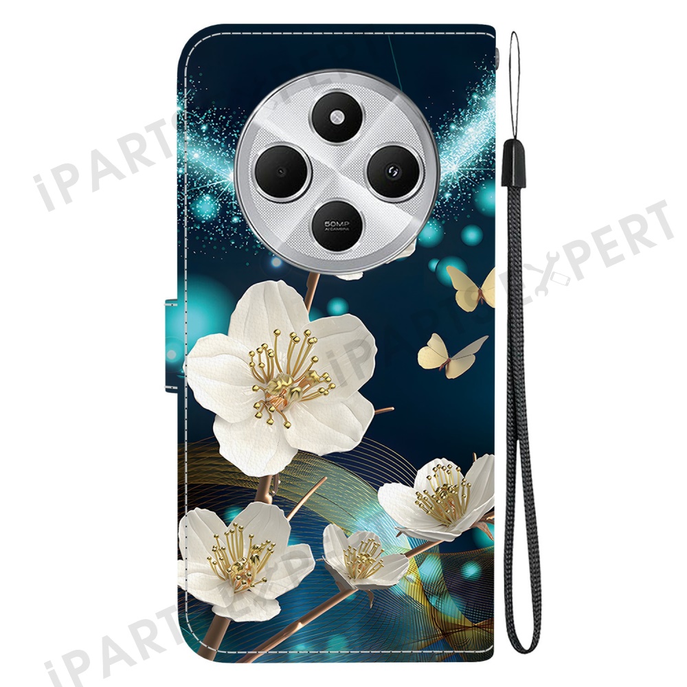 Phone Case For Xiaomi Redmi 14C 4G / Redmi 14R 5G / Poco C75 4G Pattern Printing Leather Flip Wallet Cover with Lanyard - Magnolia