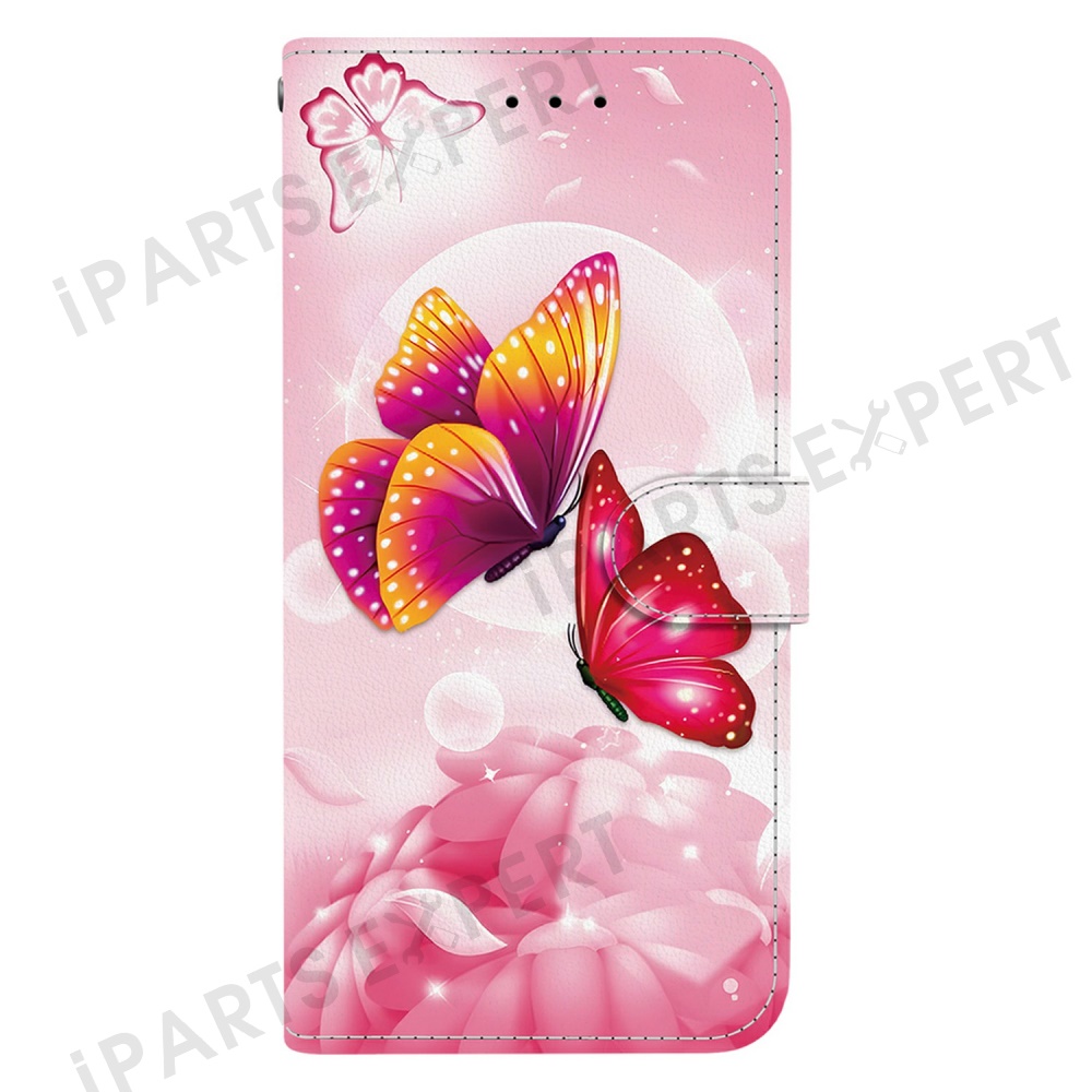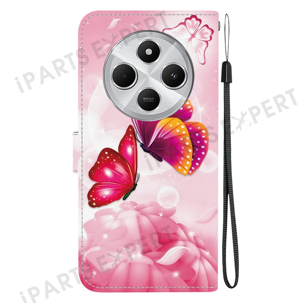 Phone Case For Xiaomi Redmi 14C 4G / Redmi 14R 5G / Poco C75 4G Pattern Printing Leather Flip Wallet Cover with Lanyard - Pink Butterfly
