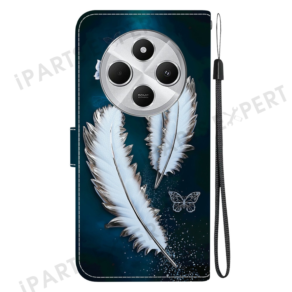 Phone Case For Xiaomi Redmi 14C 4G / Redmi 14R 5G / Poco C75 4G Pattern Printing Leather Flip Wallet Cover with Lanyard - White Butterfly Feather