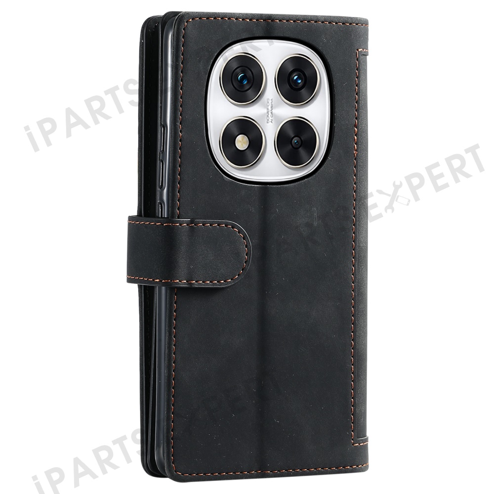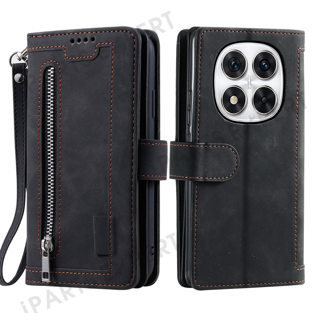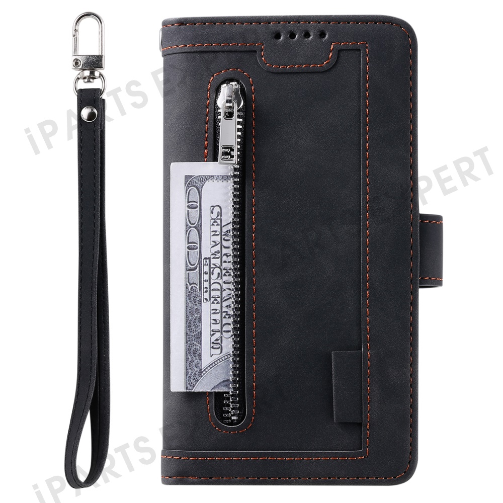 Phone Case for Xiaomi Redmi Note 14 Pro+ 5G / 14 Pro 5G / Poco X7 5G Leather Cover with Zipper Wallet 9 Card Slots - Black