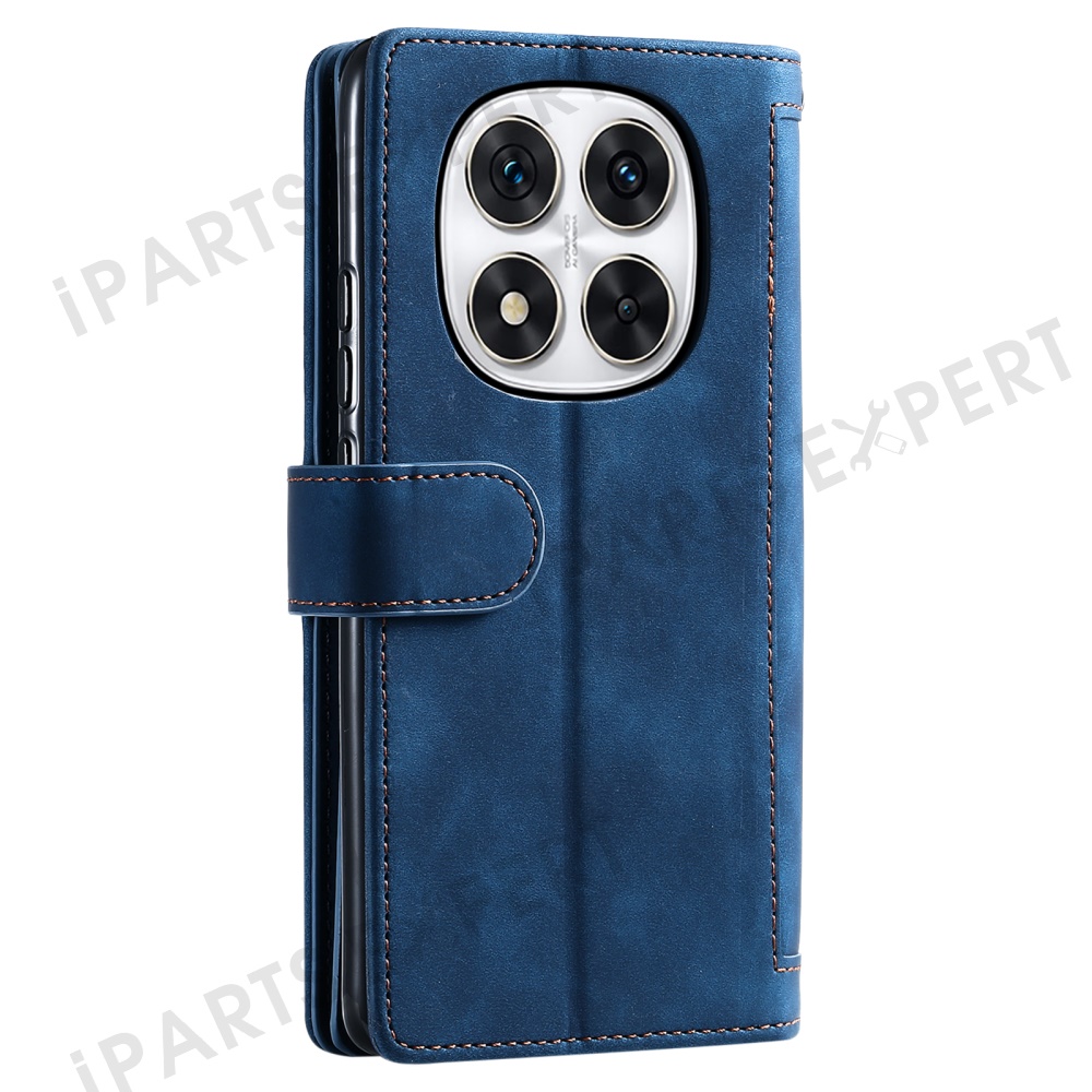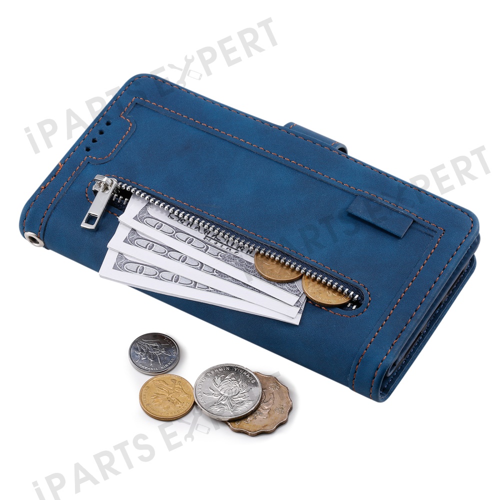 Phone Case for Xiaomi Redmi Note 14 Pro+ 5G / 14 Pro 5G / Poco X7 5G Leather Cover with Zipper Wallet 9 Card Slots - Blue