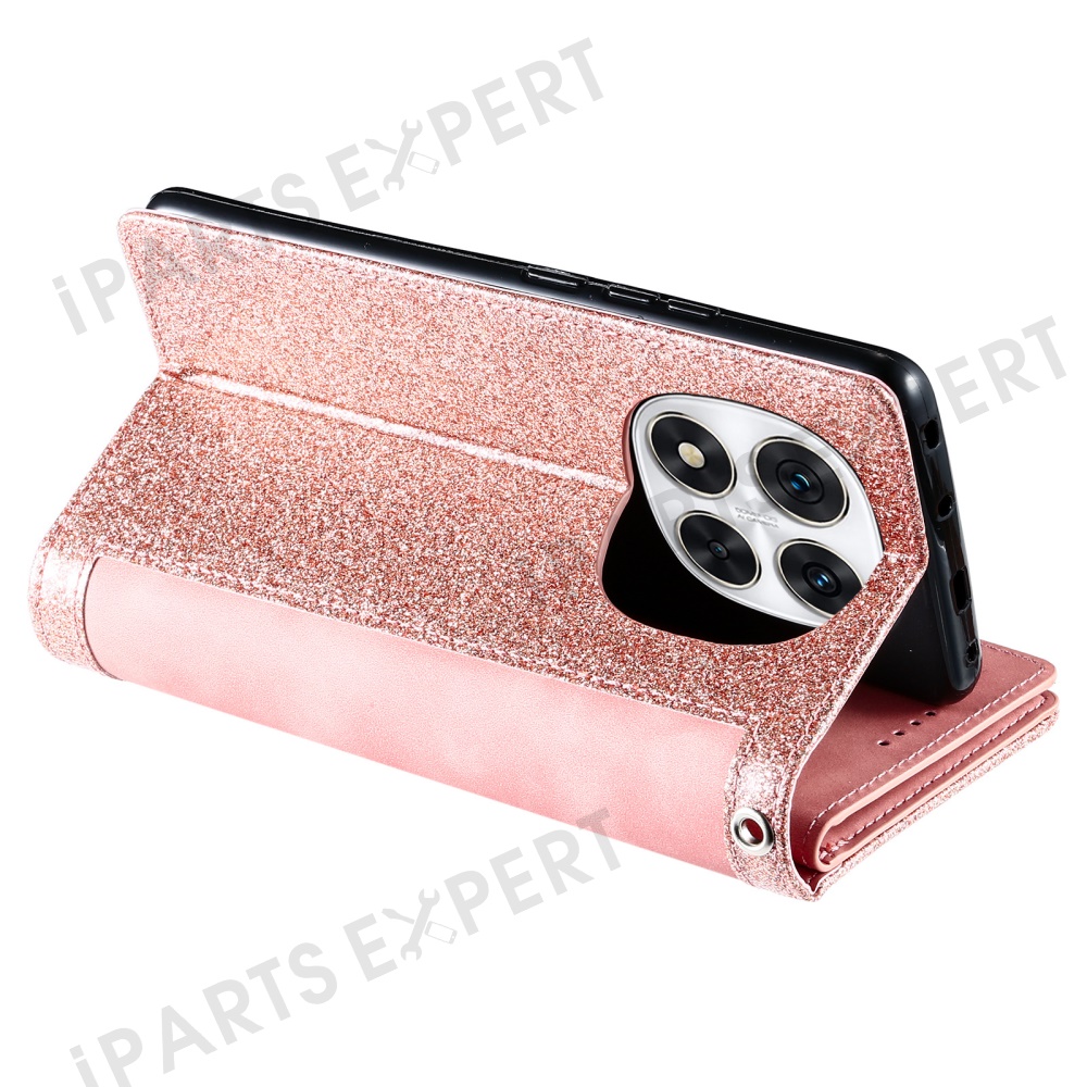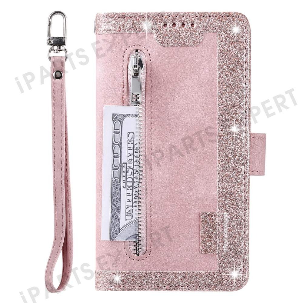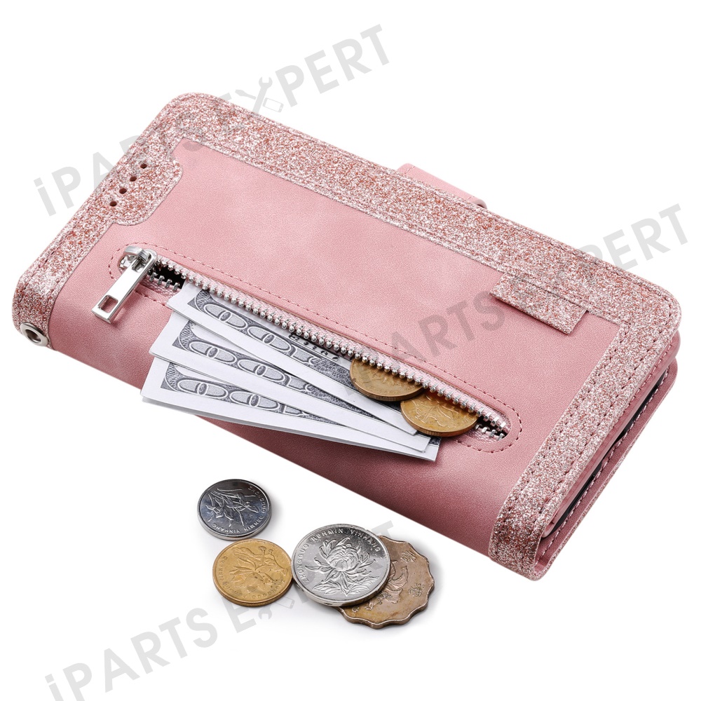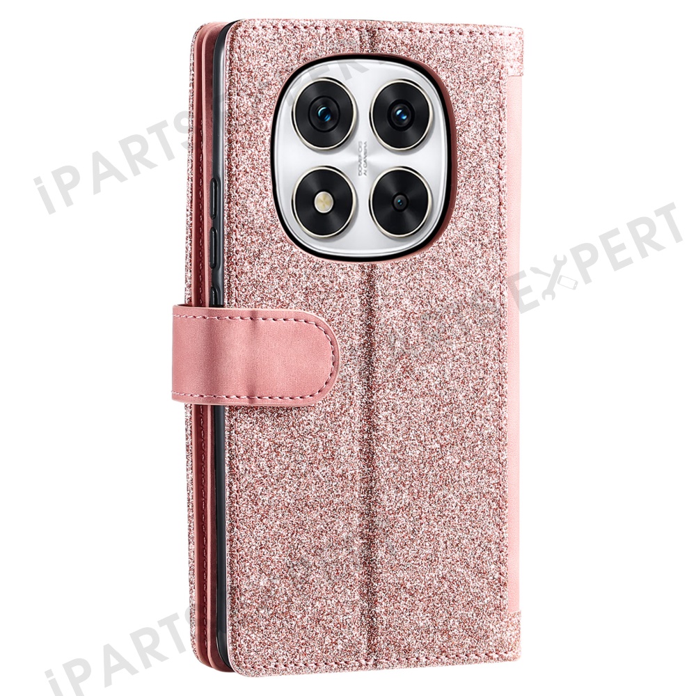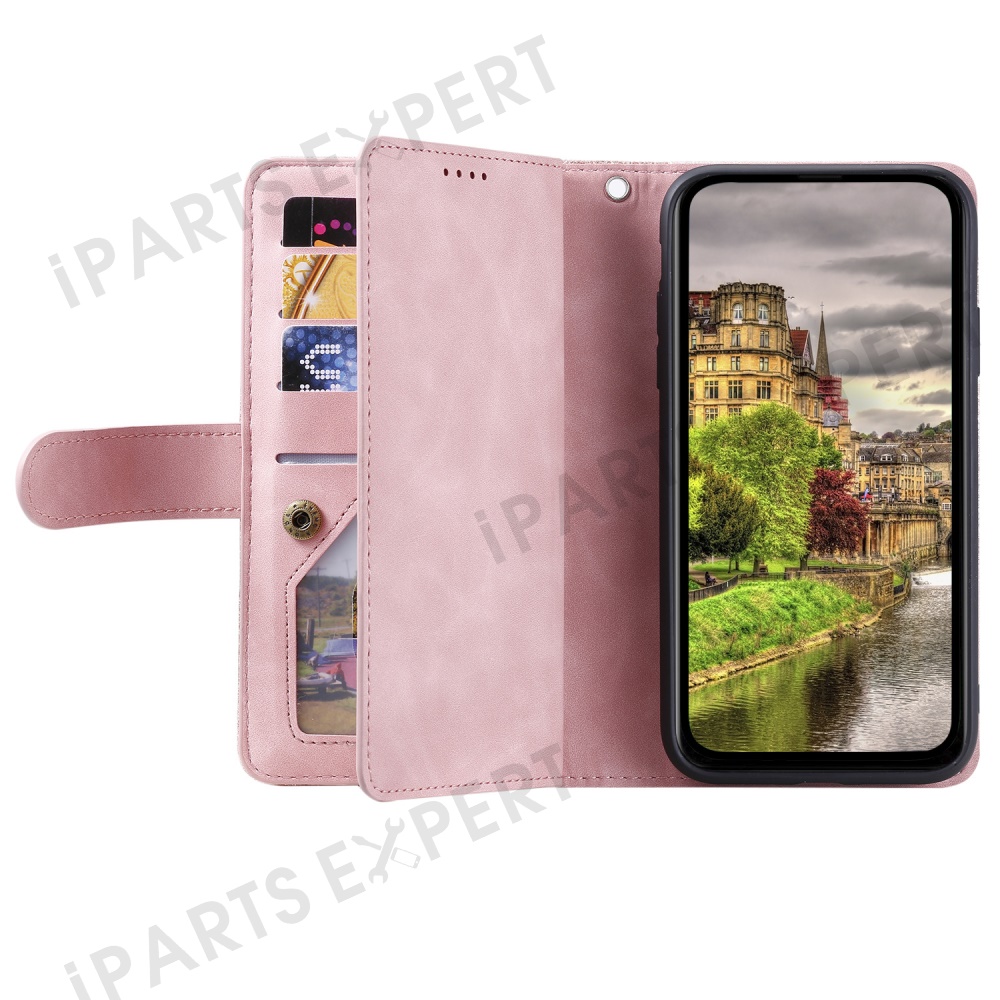 Phone Case for Xiaomi Redmi Note 14 Pro+ 5G / 14 Pro 5G / Poco X7 5G Leather Cover with Zipper Wallet 9 Card Slots - Rose Gold