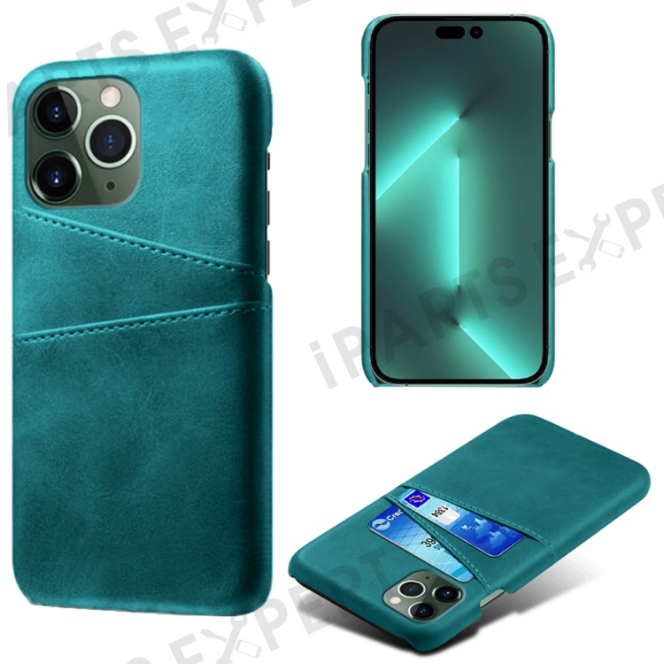 Phone Cover for iPhone 15 Pro , PU Leather Coated PC Protective Back Case with Dual Card Slots - Green