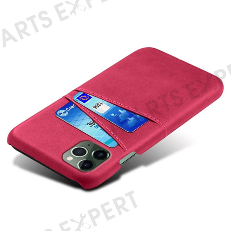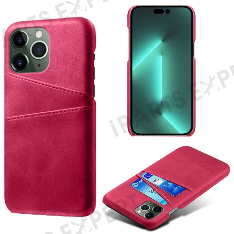 Phone Cover for iPhone 15 Pro , PU Leather Coated PC Protective Back Case with Dual Card Slots - Rose