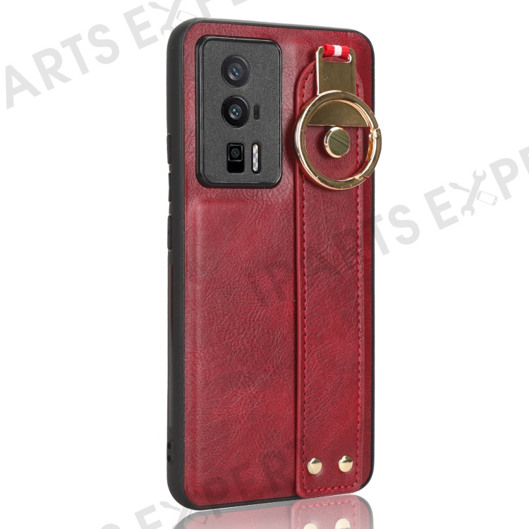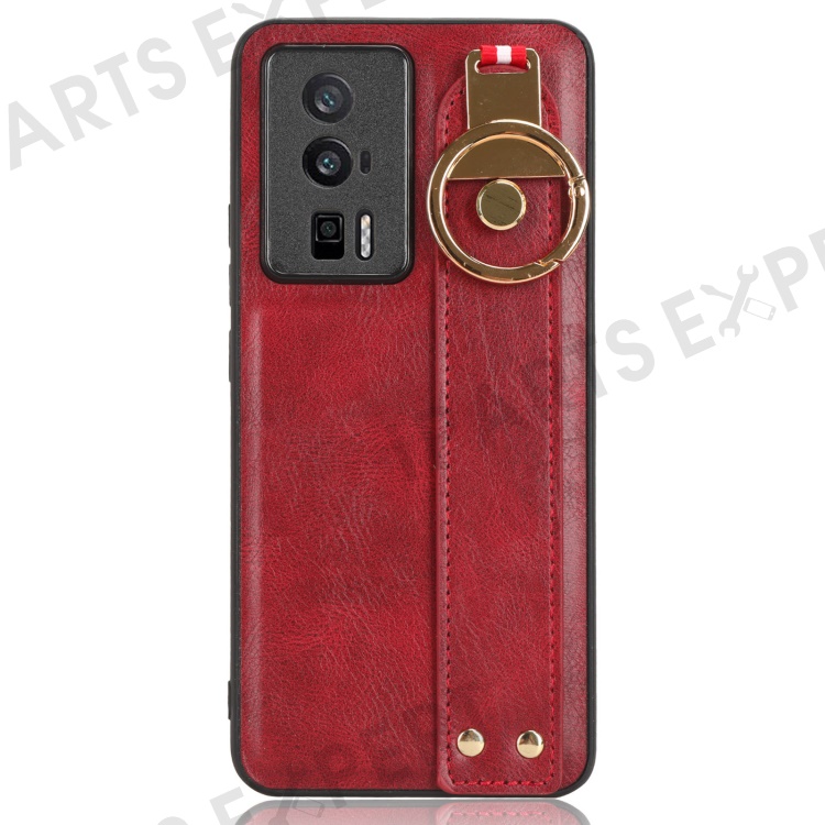 Wristband Kickstand Phone Cover for Xiaomi Poco F5 Pro 5G / Redmi K60 Pro 5G / K60 5G , Leather Coated PC+TPU Case with Neck Strap - Red