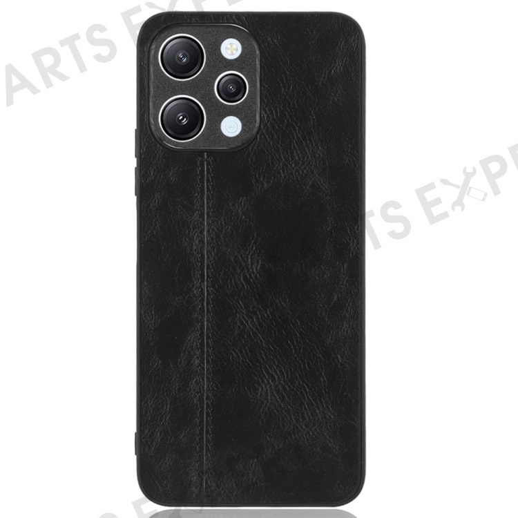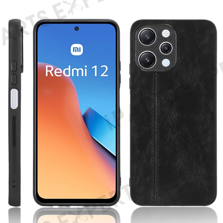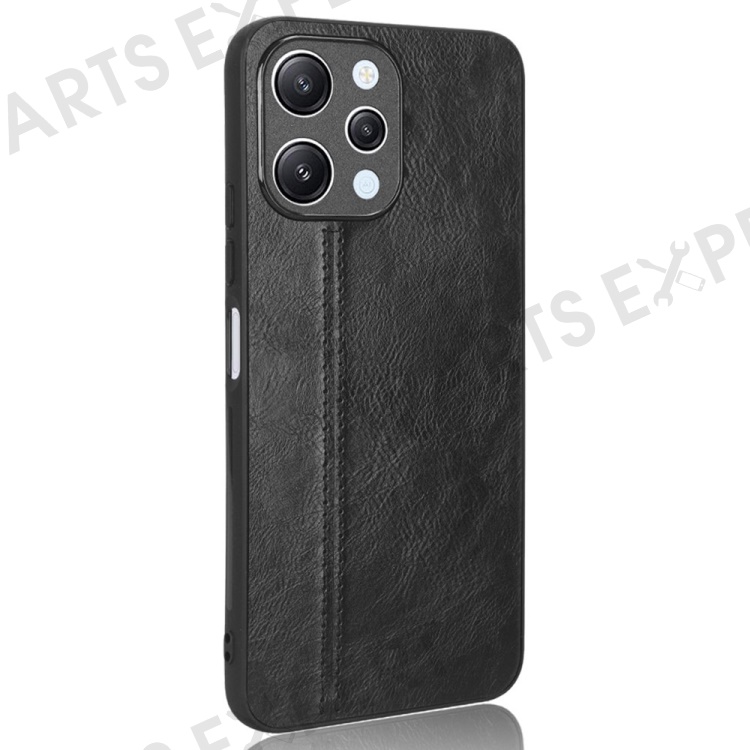 Phone Cover for Xiaomi Redmi 12 4G , Stitching Line Drop Proof PU Leather Coated PC+TPU Back Case - Black