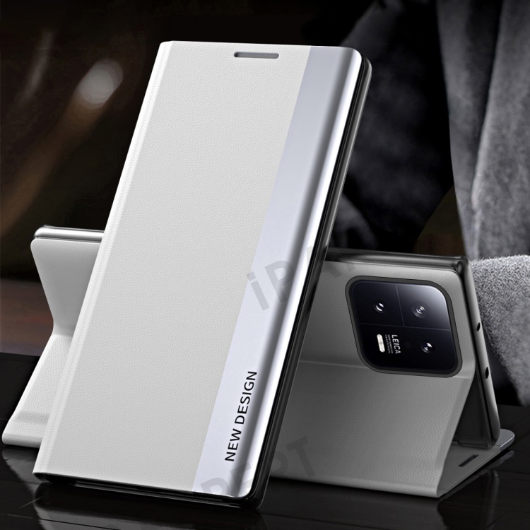 Phone Leather Case for Xiaomi 13 5G, Electroplating Anti-drop Cell Phone Stand Cover - White