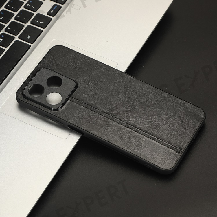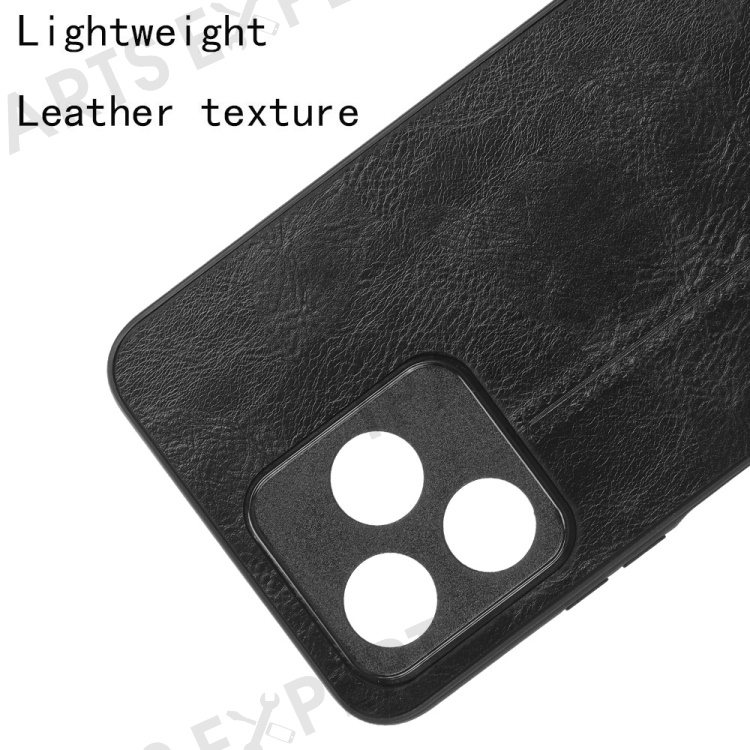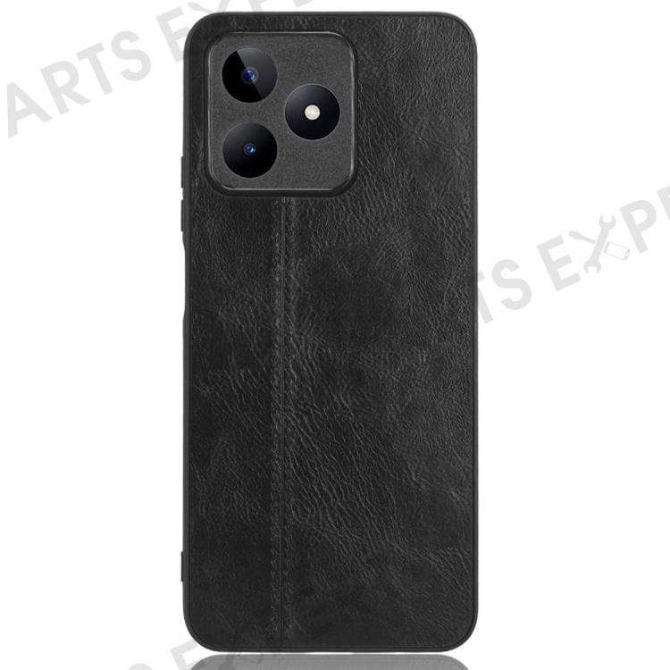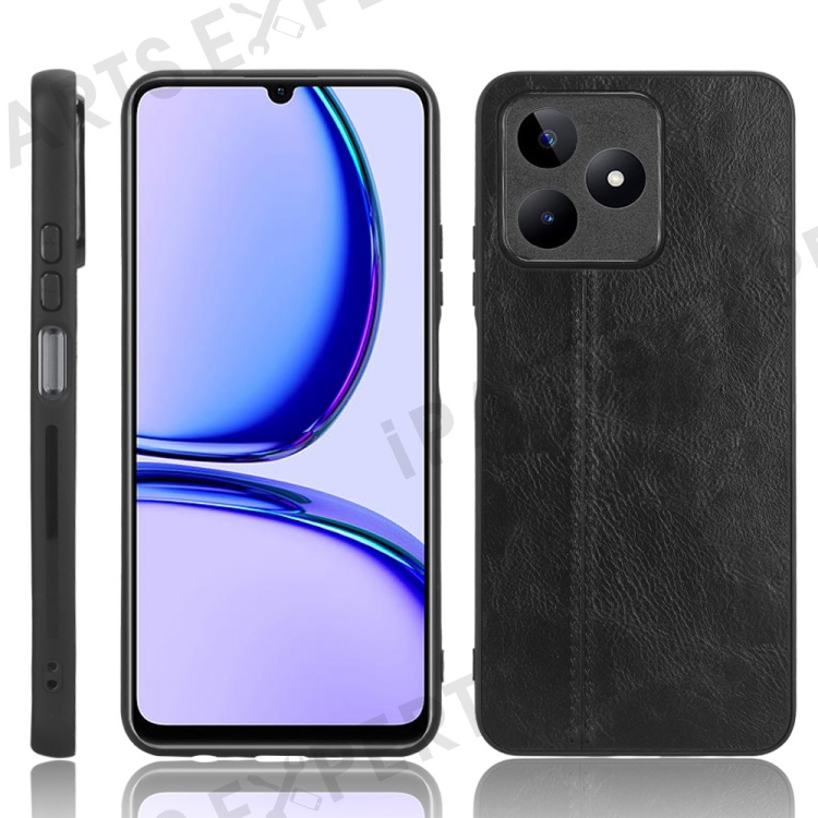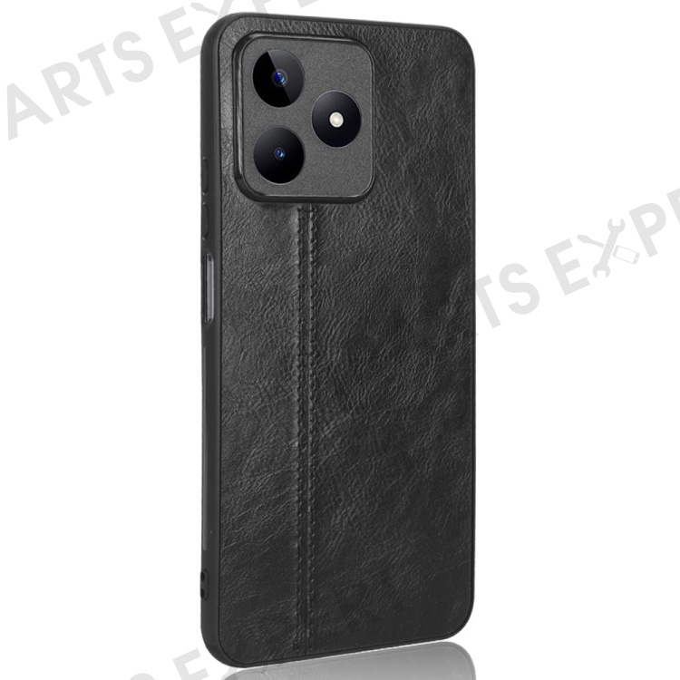 Phone Protective Cover for Realme C53 (Global) / C53 (India) / C51 , Stitching Line PU Leather Coated PC + TPU Back Case - Black