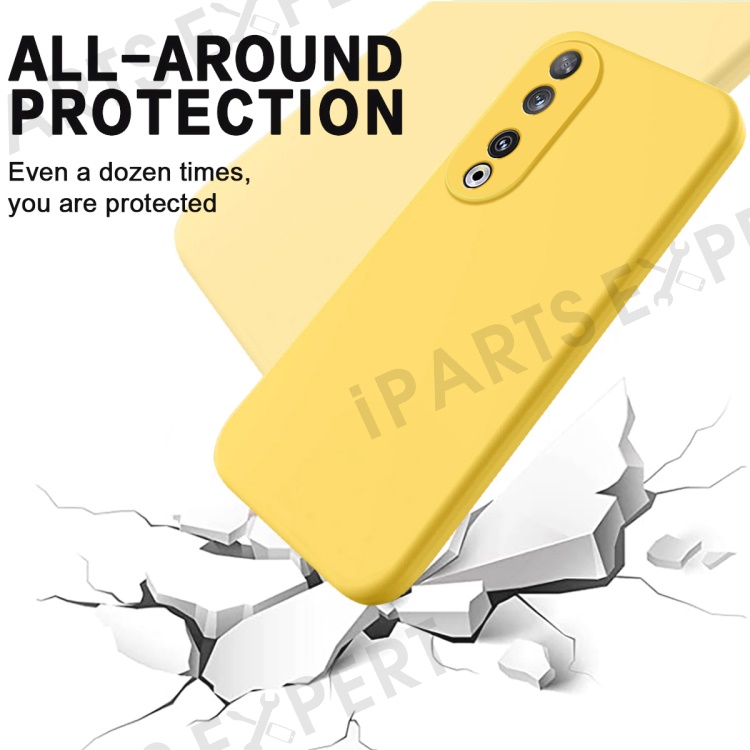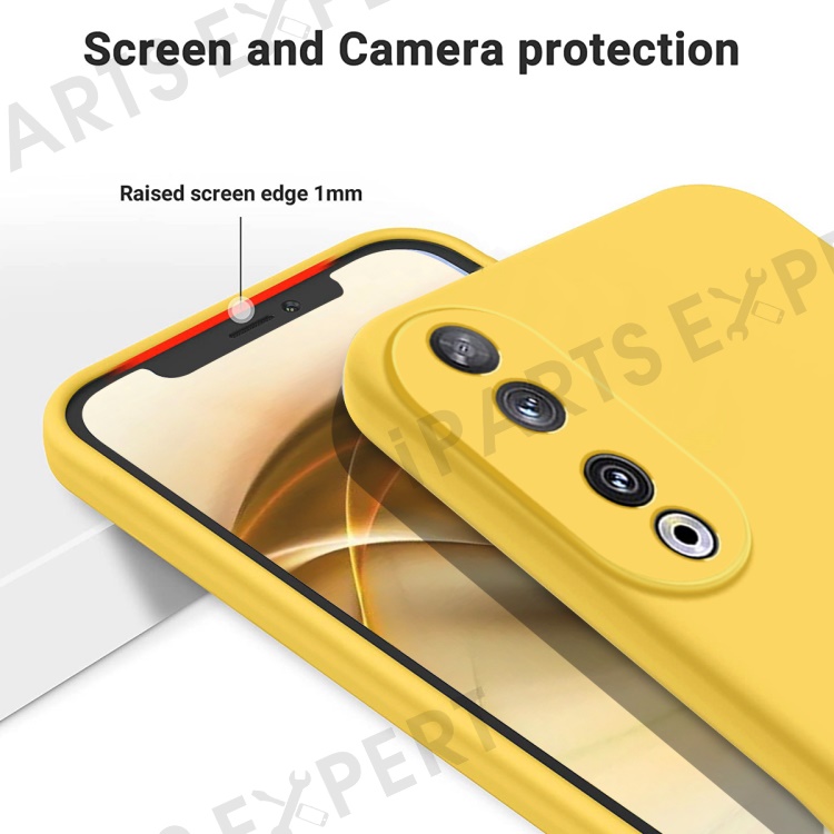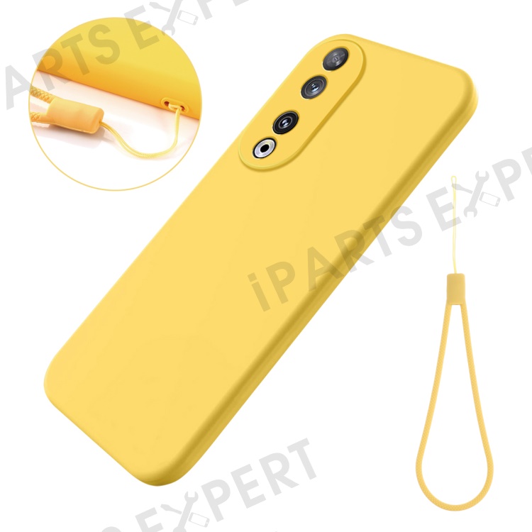 Protective Case for Honor 90 , Liquid Silicone Soft Lining Phone Cover with Strap - Yellow