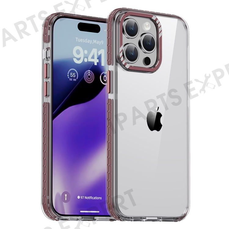 Protective Case for iPhone 15 Pro Max Anti-Drop Hard PC+TPU Phone Cover with Metal Lens Frame - Wine Red