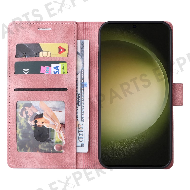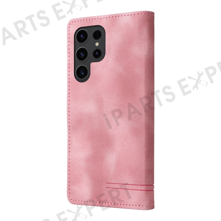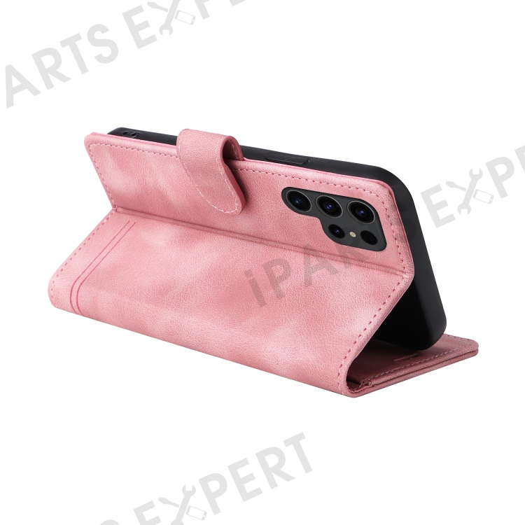 Protective Case for Samsung Galaxy S23 Ultra PU Leather Wallet Case 007 Series Skin-Touch Phone Cover - Pink