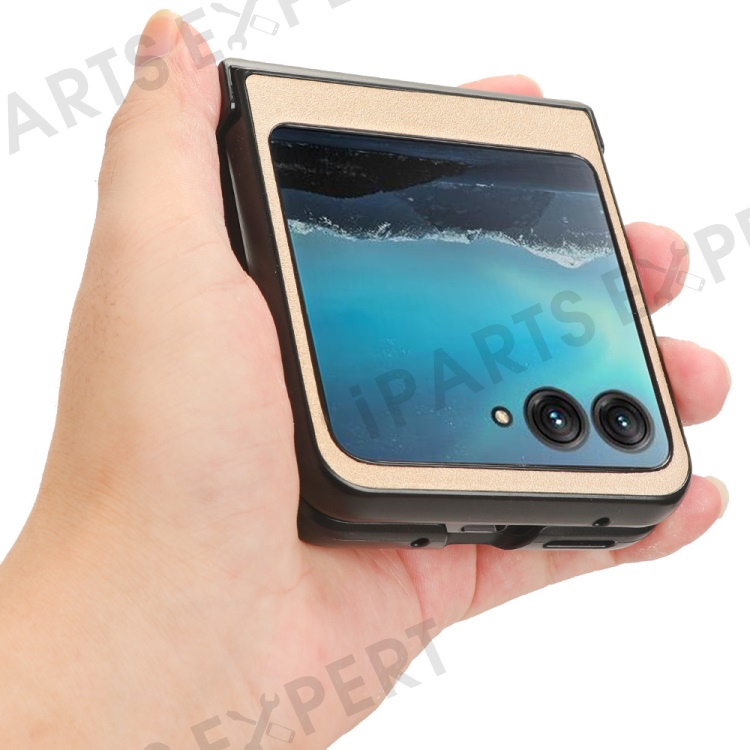 Protective Cover for Motorola Razr 40 Ultra 5G , Sandskin Texture PU Leather Coated Acrylic Folding Phone Case - Gold